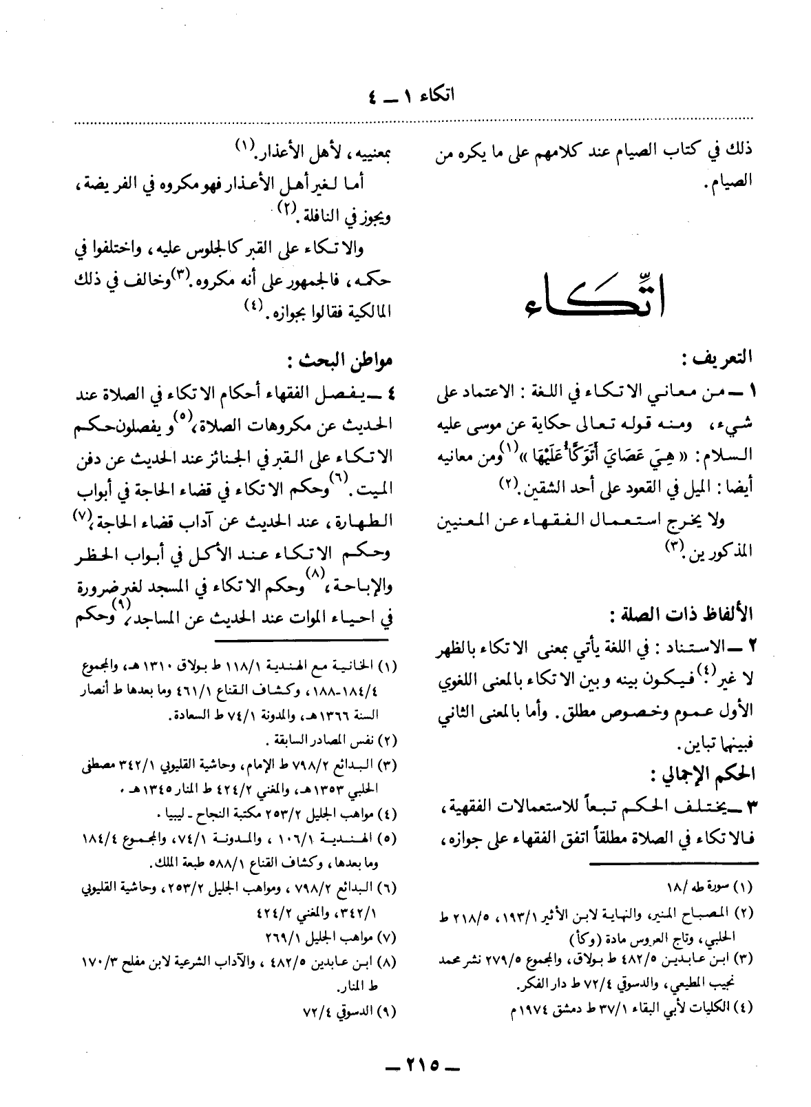 1 - مِنْ مَعَانِي الاِتِّكَاءِ فِي اللُّغَةِ: الاِعْتِمَادُ عَلَى شَيْءٍ، وَمِنْهُ قَوْله تَعَالَى حِكَايَةً عَنْ مُوسَى عَلَيْهِ السَّلَامُ: {هِيَ عَصَايَ أَتَوَكَّأُ عَلَيْهَا} (1) وَمِنْ مَعَانِيهِ أَيْضًا: الْمَيْل فِي الْقُعُودِ عَلَى أَحَدِ الشِّقَّيْنِ (2) .