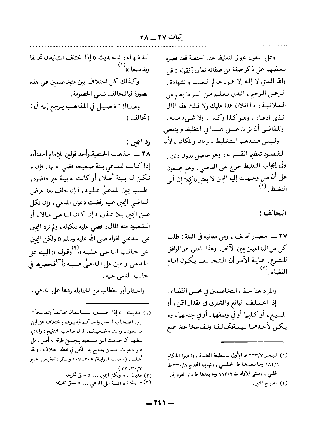 الْفُقَهَاءِ، لِلْحَدِيثِ إِذَا اخْتَلَفَ الْمُتَبَايِعَانِ تَحَالَفَا وَتَفَاسَخَا (1)