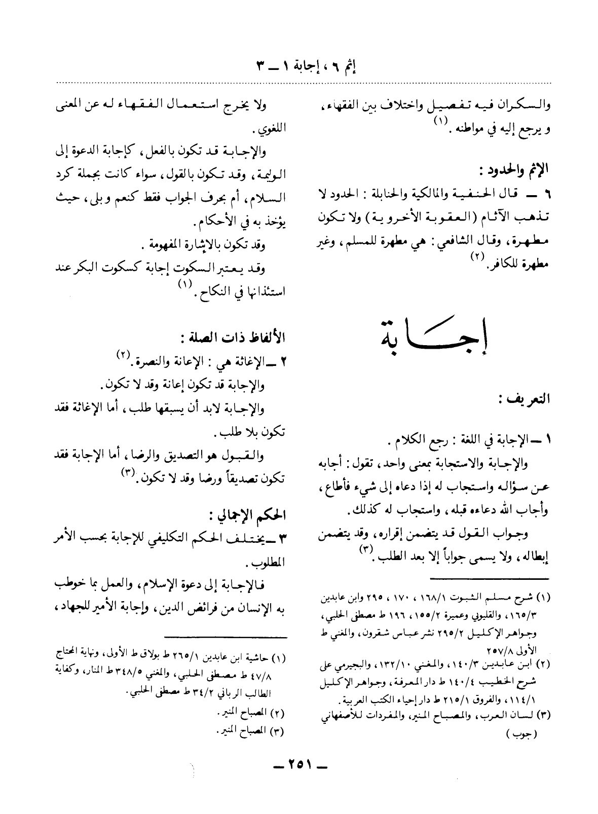 1 - الإِْجَابَةُ فِي اللُّغَةِ: رَجْعُ الْكَلاَمِ.
