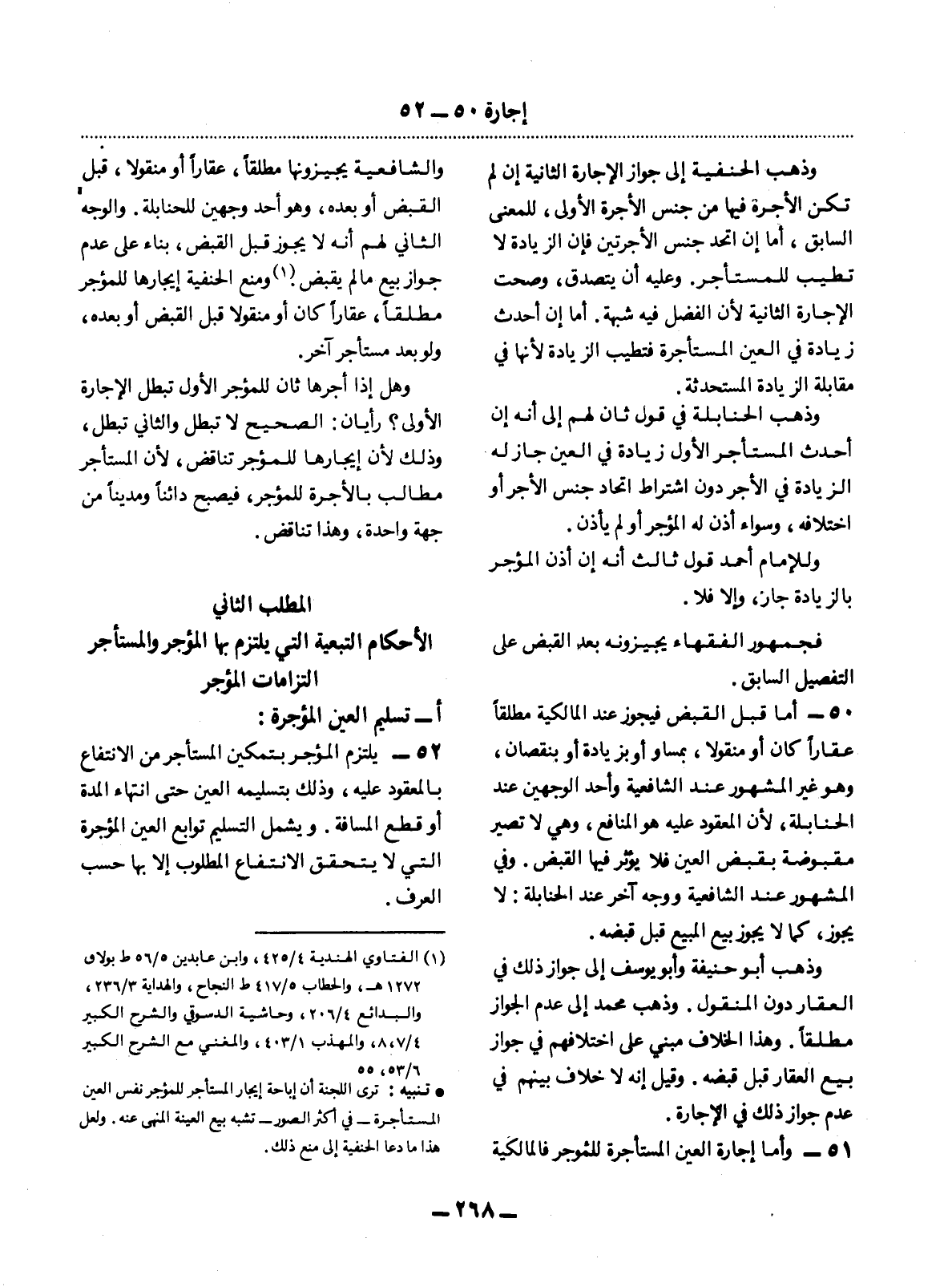 (1) الفتاوى الهندية 4 / 425، وابن عابدين 5 / 56 ط بولاق 1272 هـ، والحطاب 5 / 417 ط النجاح، والهداية 3 / 236، والبدائع 4 / 206، وحاشية الدسوقي والشرح الكبير 4 / 7، 8، والمهذب 1 / 403، والمغني مع الشرح الكبير 6 / 35، 55 * تنبيه: ترى اللجنة أن إباحة إيجار المستأجر للمؤجر نفس العين المستأجرة - في أكثر الصور - تنبيه بيع العينة المنهى عنه. ولعل هذا ما دعا الحنفية إلى منع ذلك.