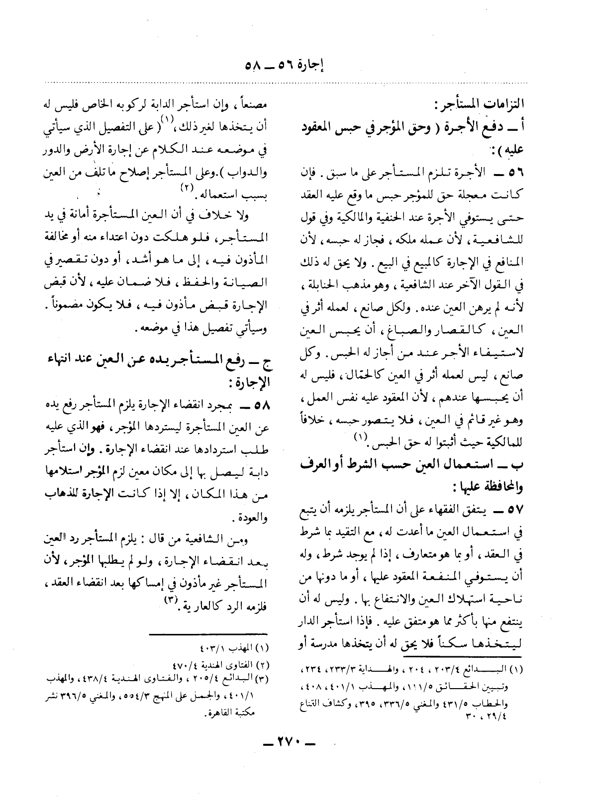 58 - بِمُجَرَّدِ انْقِضَاءِ الإِْجَارَةِ يَلْزَمُ الْمُسْتَأْجِرَ رَفْعُ يَدِهِ عَنِ الْعَيْنِ الْمُسْتَأْجَرَةِ لِيَسْتَرِدَّهَا الْمُؤَجِّرُ، فَهُوَ الَّذِي عَلَيْهِ طَلَبُ اسْتِرْدَادِهَا عِنْدَ انْقِضَاءِ الإِْجَارَةِ. وَإِنِ اسْتَأْجَرَ دَابَّةً لِيَصِل بِهَا إِلَى مَكَانٍ مُعَيَّنٍ لَزِمَ الْمُؤَجِّرَ اسْتِلاَمُهَا مِنْ هَذَا الْمَكَانِ، إِلاَّ إِذَا كَانَ الإِْجَارَةُ لِلذَّهَابِ وَالْعَوْدَةِ.
