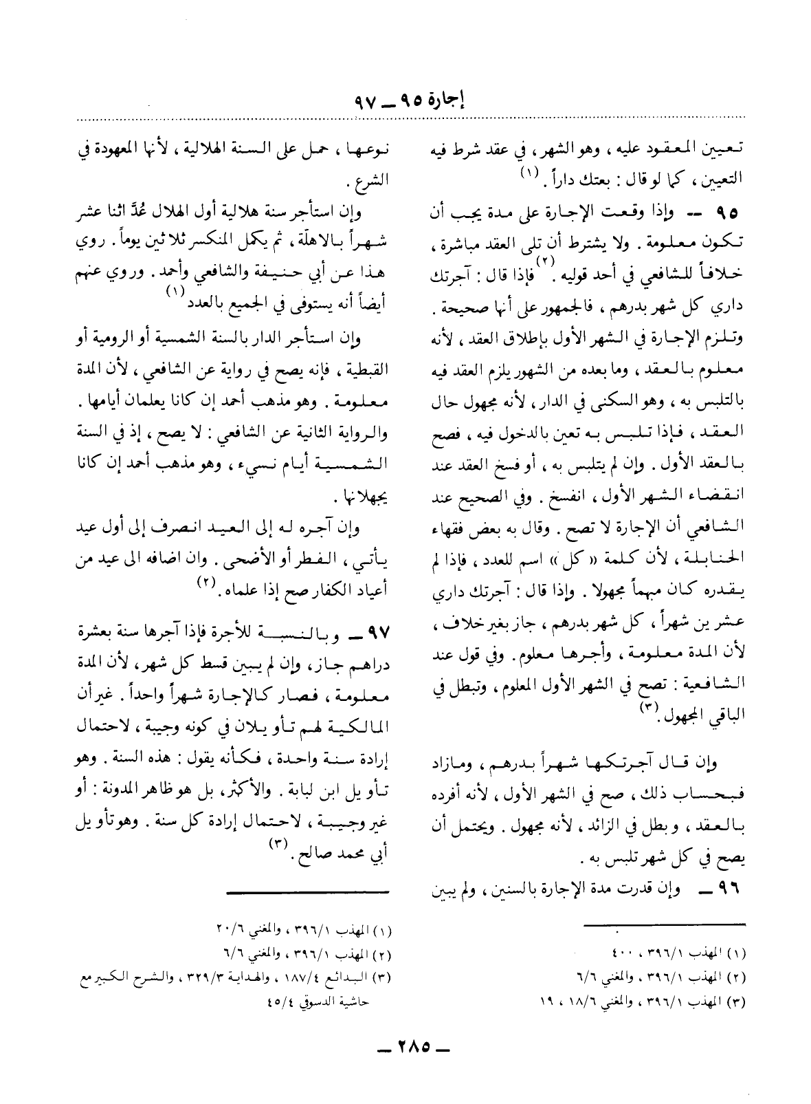 96 - وَإِنْ قُدِّرَتْ مُدَّةُ الإِْجَارَةِ بِالسِّنِينَ، وَلَمْ يُبَيِّنْ