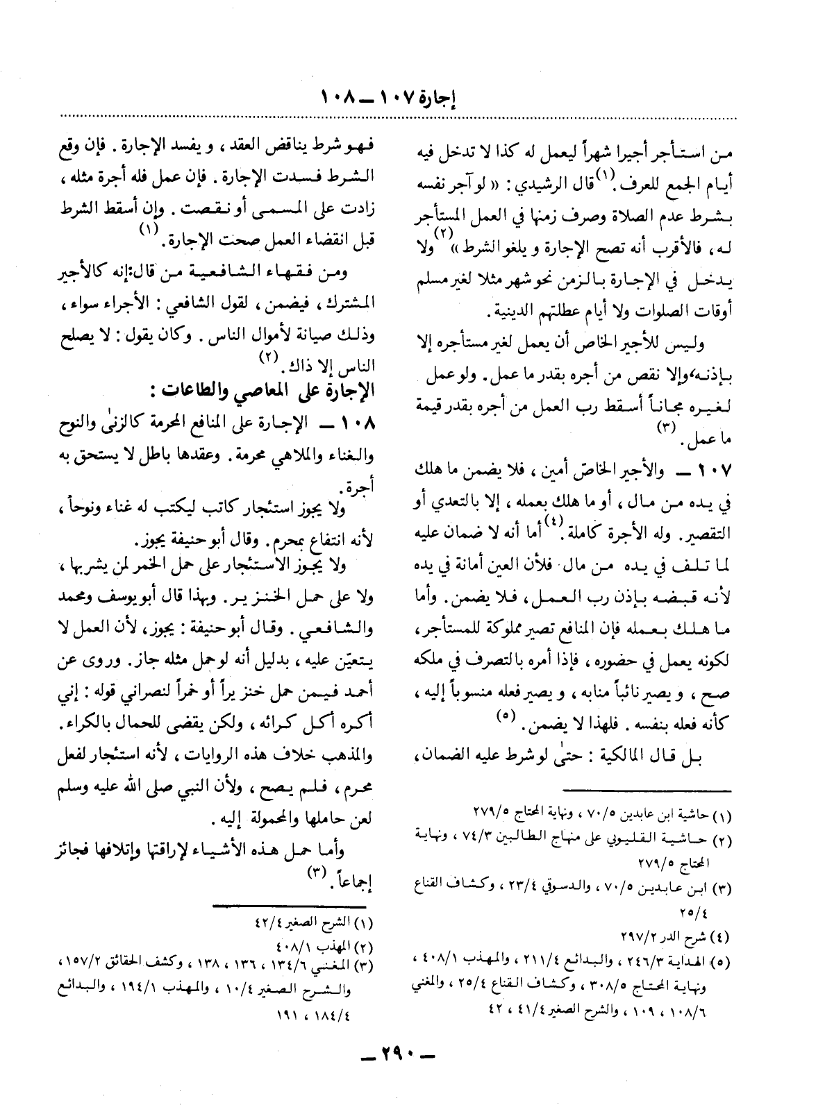 108 - الإِْجَارَةُ عَلَى الْمَنَافِعِ الْمُحَرَّمَةِ كَالزِّنَى وَالنَّوْحِ وَالْغِنَاءِ وَالْمَلاَهِي مُحَرَّمَةٌ وَعَقْدُهَا بَاطِلٌ لاَ يُسْتَحَقُّ بِهِ أُجْرَةٌ.