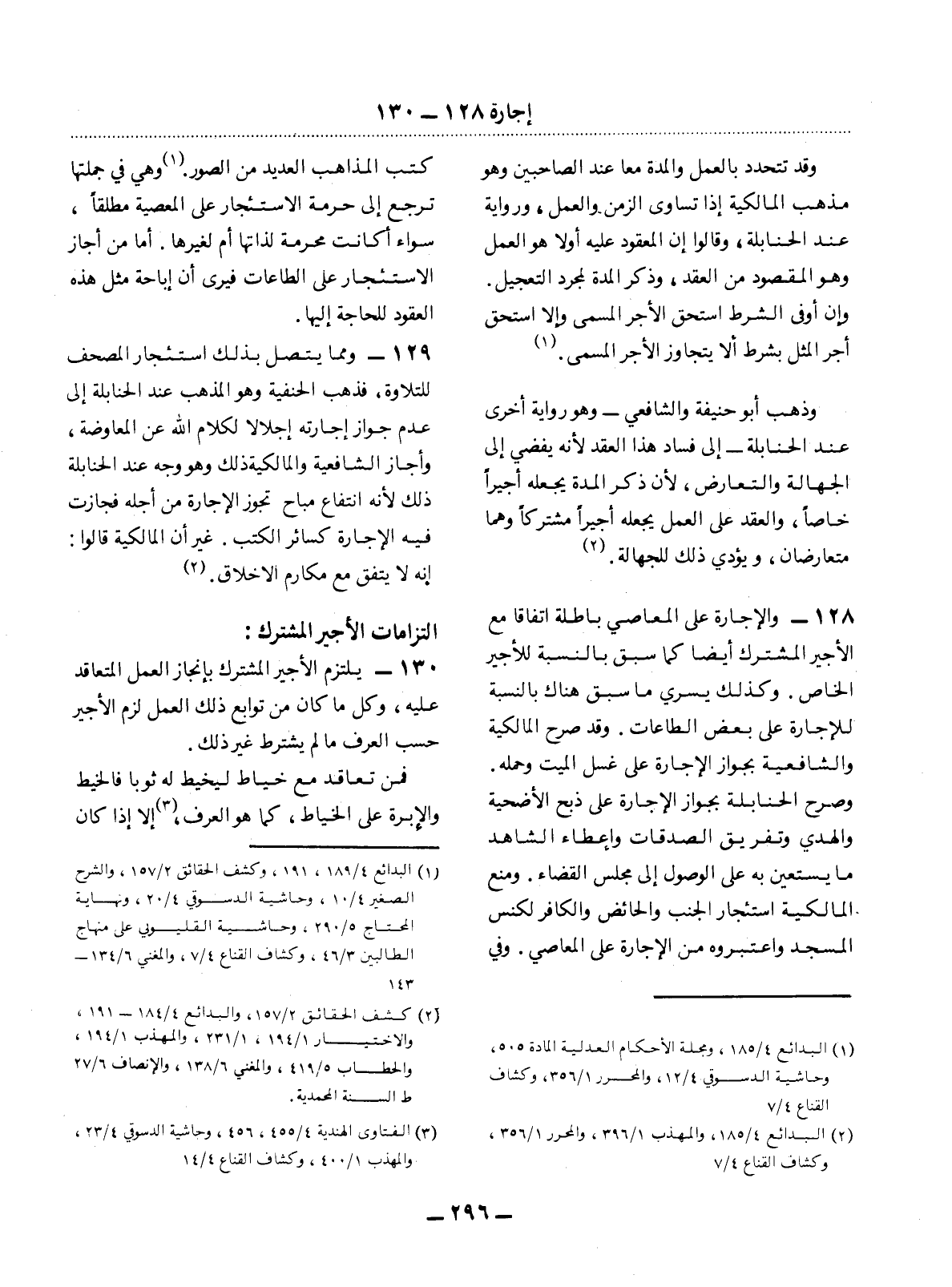 130 - يَلْتَزِمُ الأَْجِيرُ الْمُشْتَرَكُ بِإِنْجَازِ الْعَمَل الْمُتَعَاقَدِ عَلَيْهِ، وَكُل مَا كَانَ مِنْ تَوَابِعِ ذَلِكَ الْعَمَل لَزِمَ الأَْجِيرَ حَسَبَ الْعُرْفِ مَا لَمْ يُشْتَرَطْ غَيْرُ ذَلِكَ. فَمَنْ تَعَاقَدَ مَعَ خَيَّاطٍ لِيَخِيطَ لَهُ ثَوْبًا فَالْخَيْطُ وَالإِْبْرَةُ عَلَى الْخَيَّاطِ، كَمَا هُوَ الْعُرْفُ (3) ، إِلاَّ إِذَا كَانَ