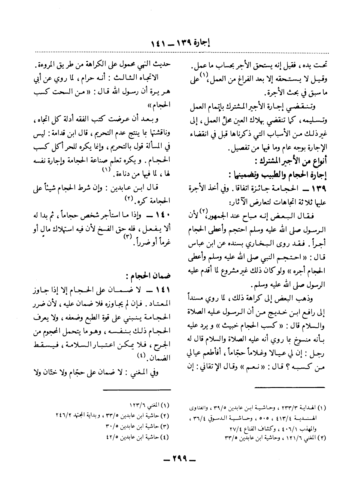 140 - وَإِذَا مَا اسْتَأْجَرَ شَخْصٌ حَجَّامًا، ثُمَّ بَدَا لَهُ أَلاَّ يَفْعَل، فَلَهُ حَقُّ الْفَسْخِ لأَِنَّ فِيهِ اسْتِهْلاَكَ مَالٍ أَوْ غُرْمًا أَوْ ضَرَرًا. (3)