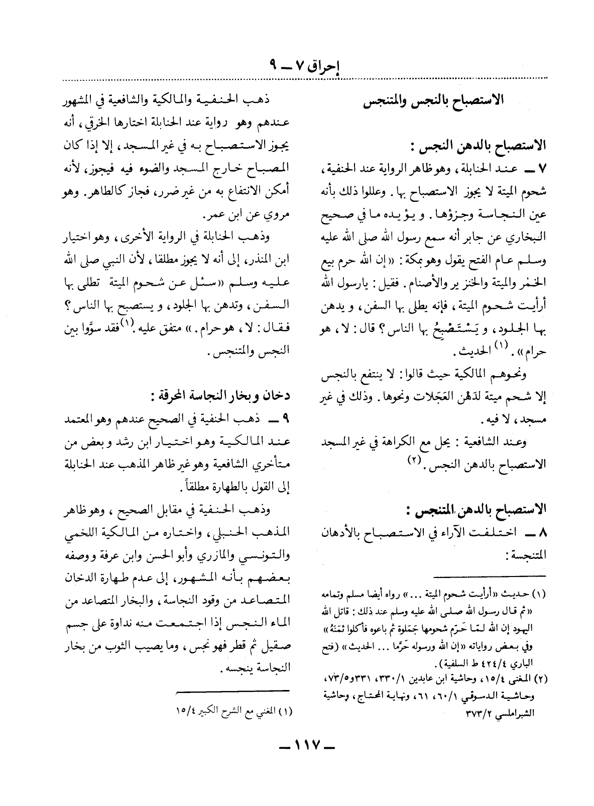 8 - اخْتَلَفَتِ الآْرَاءُ فِي الاِسْتِصْبَاحِ بِالأَْدْهَانِ الْمُتَنَجِّسَةِ: