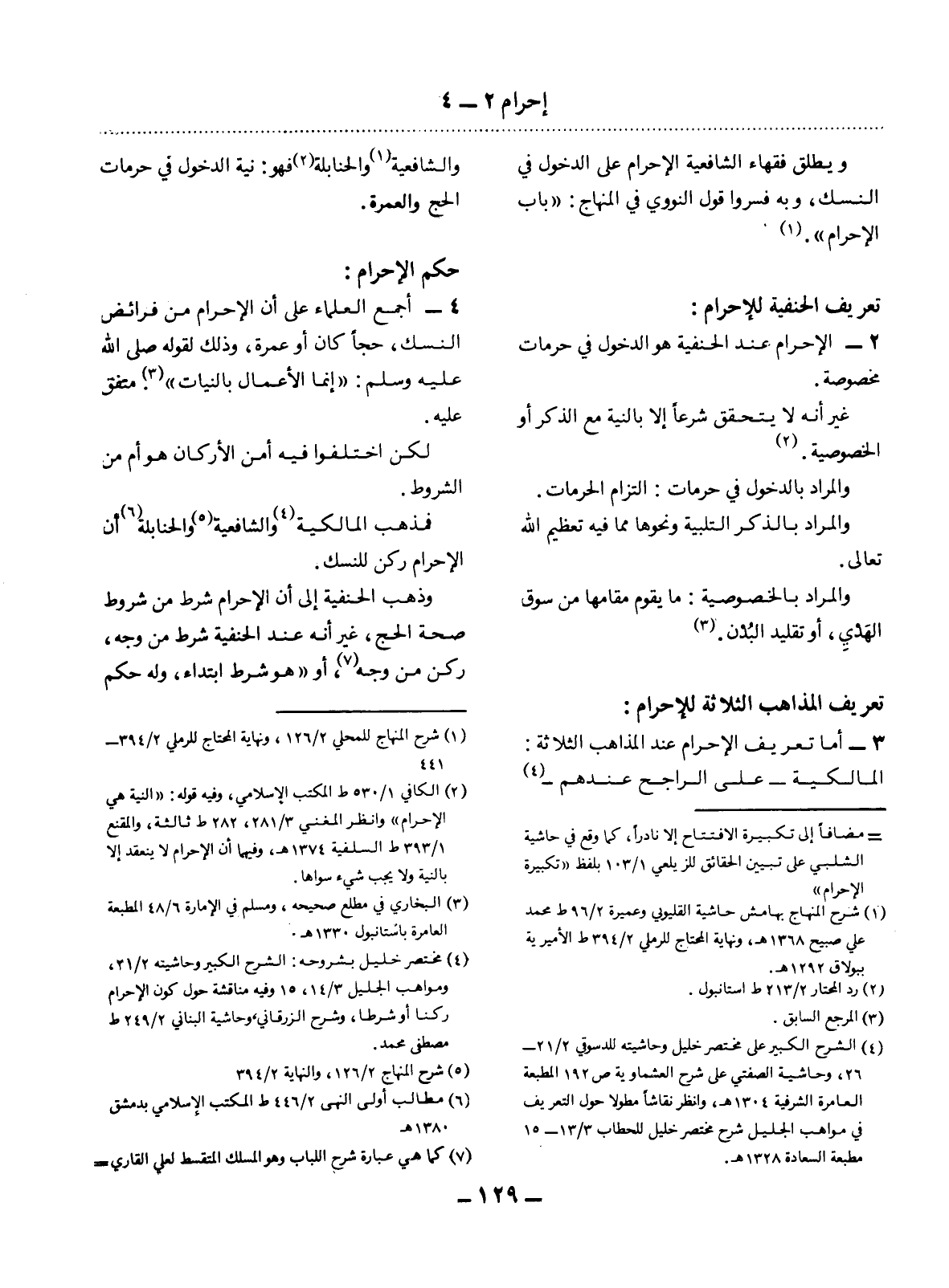 (4) مختصر خليل بشروحه: الشرح الكبير وحاشيته 2 / 21، ومواهب الجليل 3 / 14، 15 وفي مناقشة حول كون الإحرام ركنا أو شرطا، وشرح الزرقاني وحاشية البناني 2 / 249 ط مصطفى محمد.