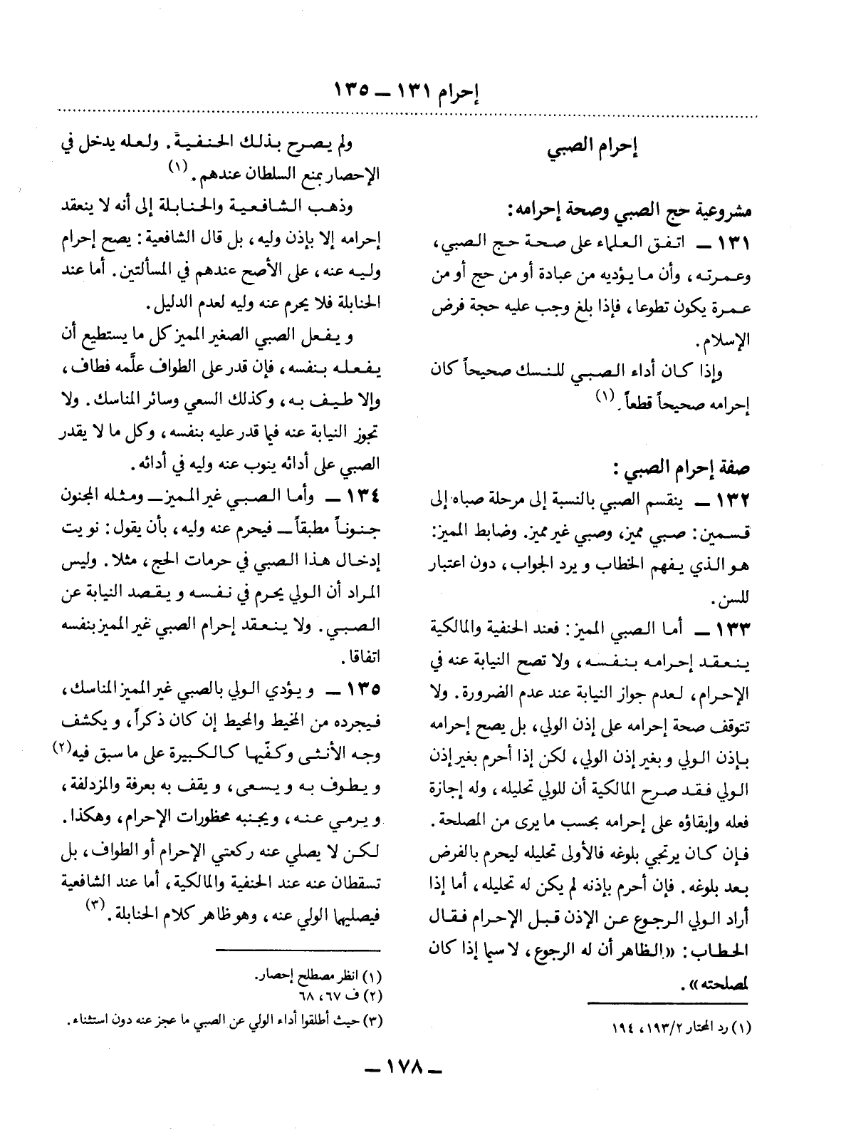 132 - يَنْقَسِمُ الصَّبِيُّ بِالنِّسْبَةِ إِلَى مَرْحَلَةِ صِبَاهُ إِلَى قِسْمَيْنِ: صَبِيٍّ مُمَيِّزٍ، وَصَبِيٍّ غَيْرِ مُمَيِّزٍ. وَضَابِطُ الْمُمَيِّزِ: هُوَ الَّذِي يَفْهَمُ الْخِطَابَ وَيَرُدُّ الْجَوَابَ، دُونَ اعْتِبَارٍ لِلسِّنِّ.