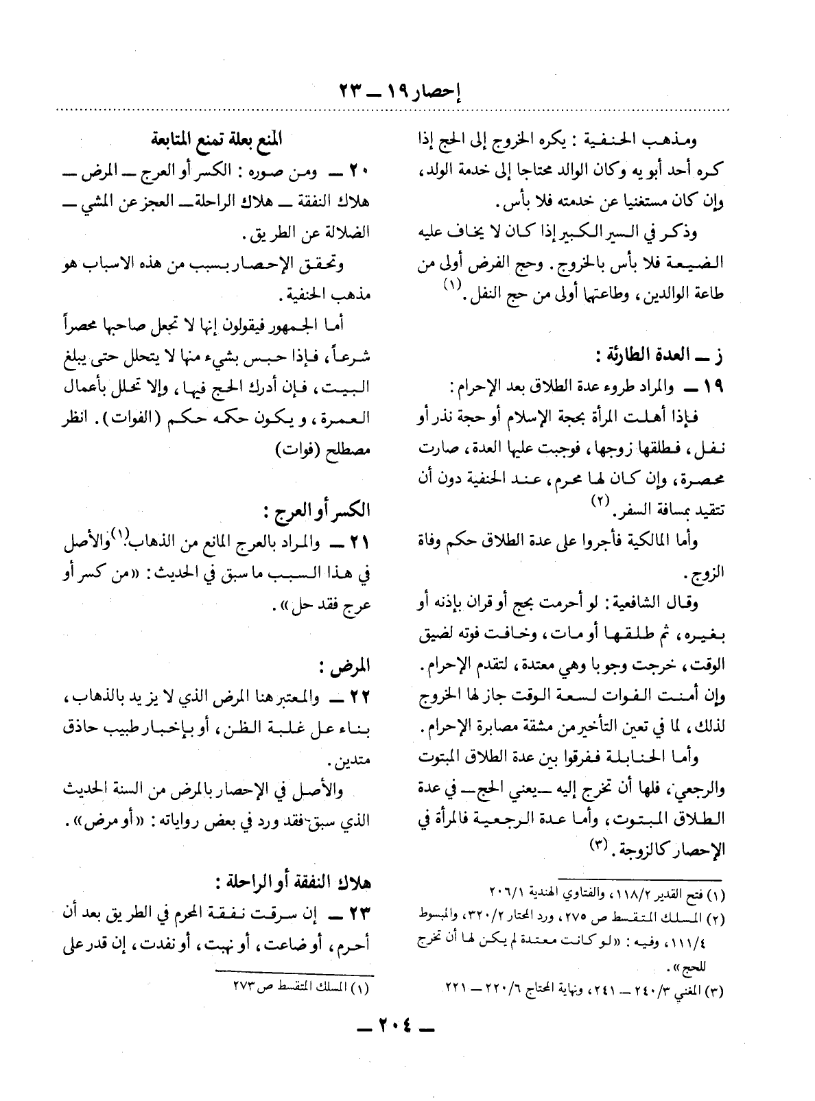(2) المسلك المتقسط ص 275، ورد المحتار 2 / 320، والمبسوط 4 / 111، وفيه: " لو كانت معتدة لم يكن لها أن تخرج