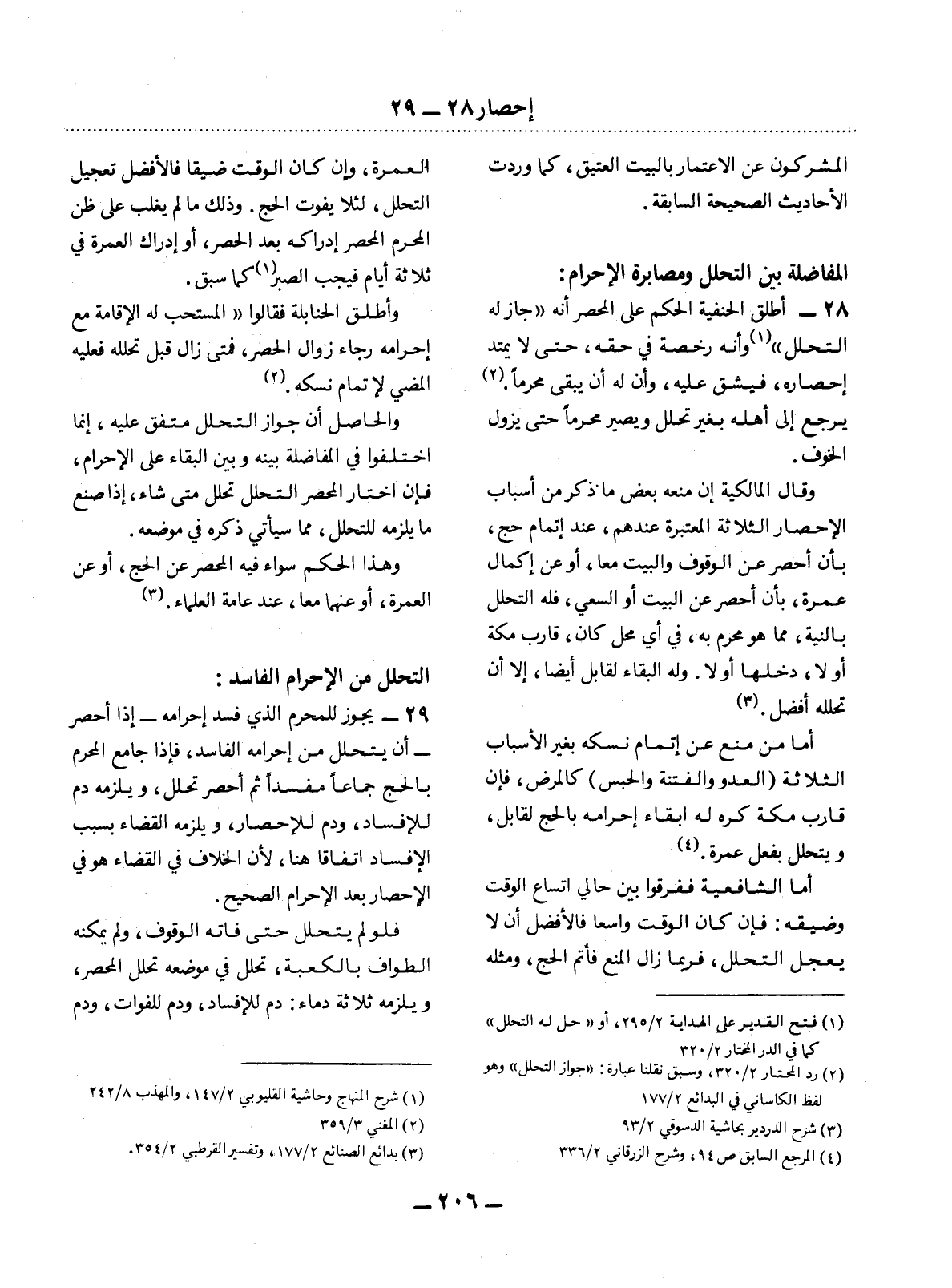 (2) رد المحتار 2 / 320، وسبق نقلنا عبارة: " جواز التحلل " وهو لفظ الكاساني في البدائع 2 / 177