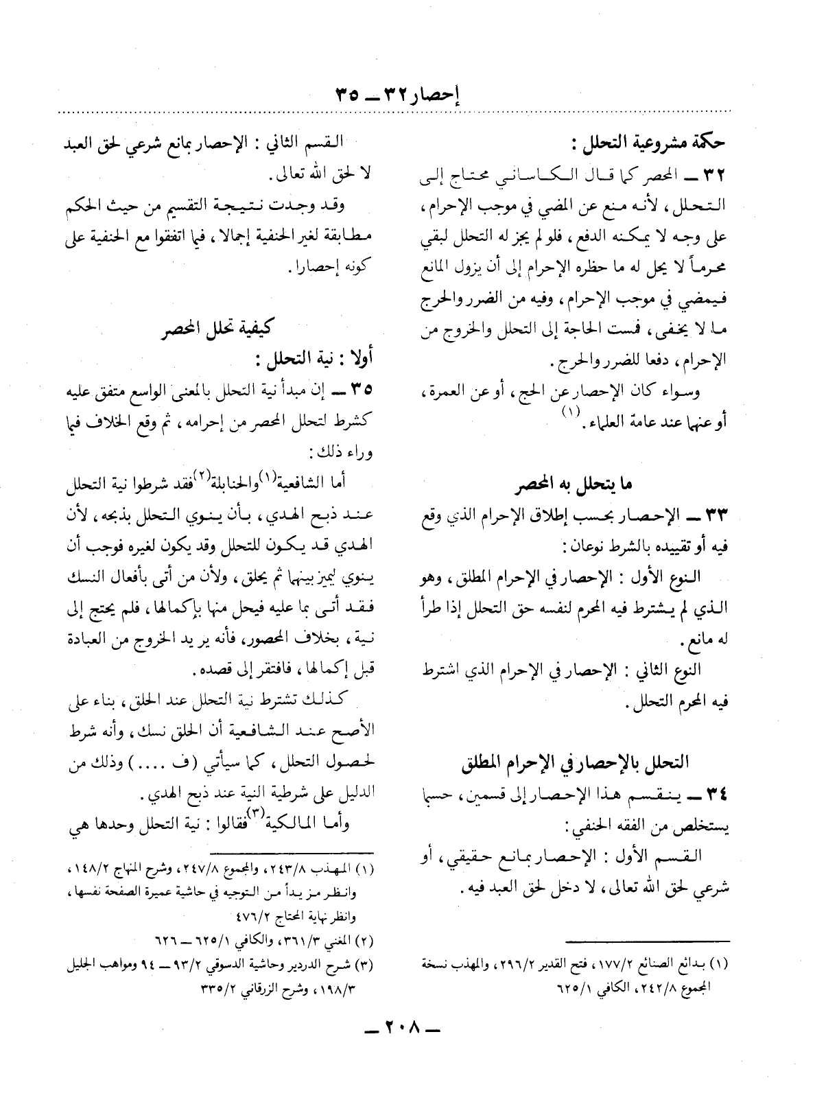 35 - إِنَّ مَبْدَأَ نِيَّةِ التَّحَلُّل بِالْمَعْنَى الْوَاسِعِ مُتَّفَقٌ عَلَيْهِ كَشَرْطٍ لِتَحَلُّل الْمُحْصَرِ مِنْ إِحْرَامِهِ، ثُمَّ وَقَعَ الْخِلاَفُ فِيمَا وَرَاءَ ذَلِكَ: