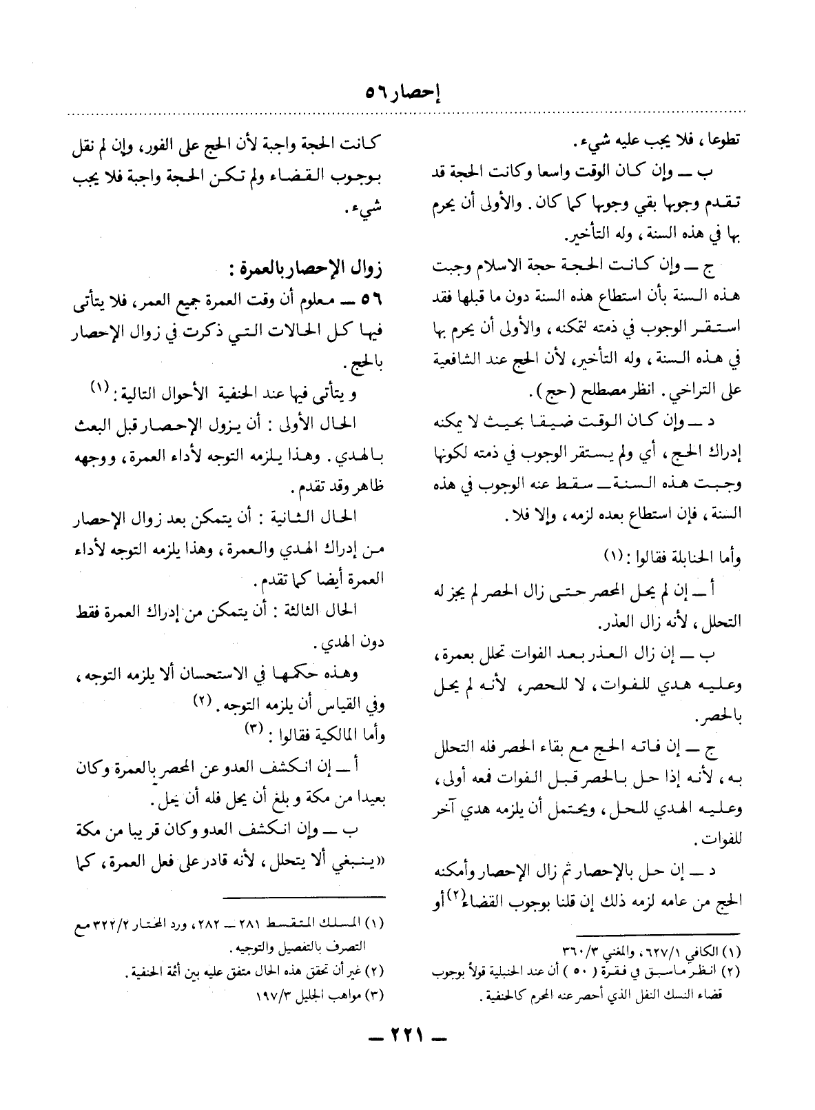(1) المسلك المتقسط 281 - 282، ورد المحتار 2 / 322 مع التصرف بالتفصيل والتوجيه.