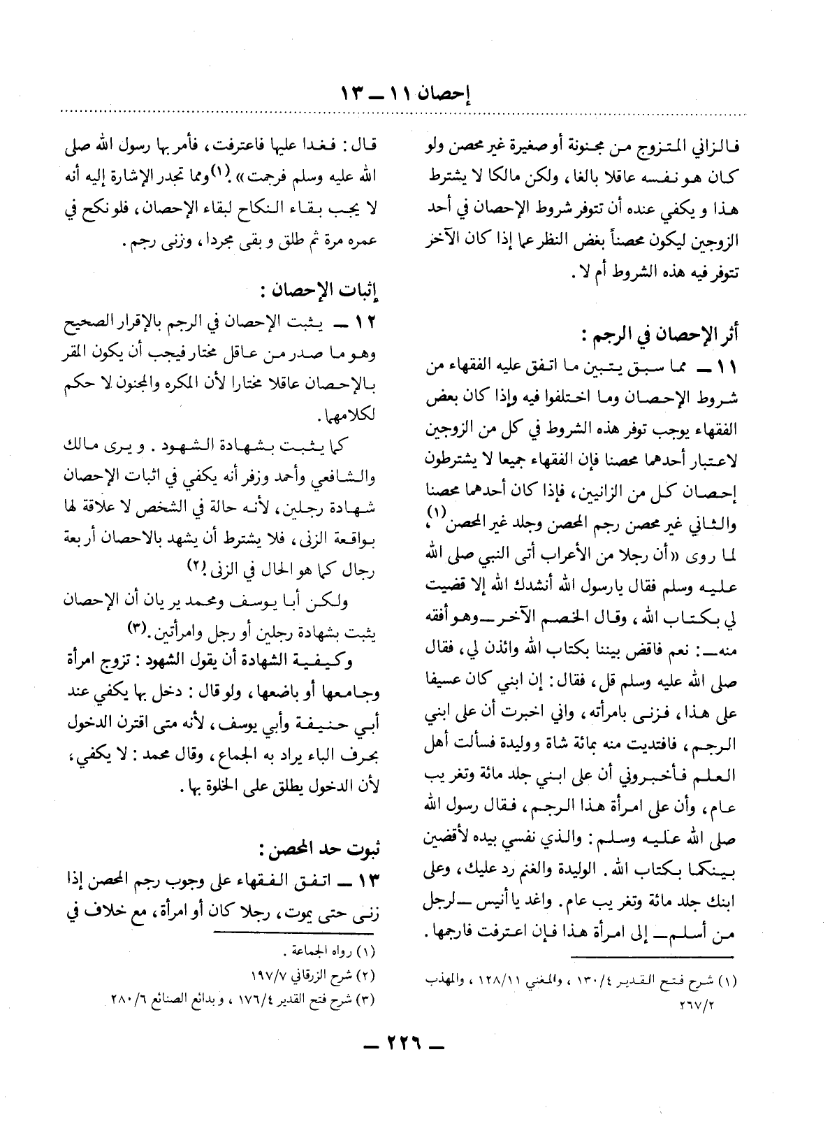 13 - اتَّفَقَ الْفُقَهَاءُ عَلَى وُجُوبِ رَجْمِ الْمُحْصَنِ إِذَا زَنَى حَتَّى يَمُوتَ، رَجُلاً كَانَ أَوِ امْرَأَةً، مَعَ خِلاَفٍ فِي