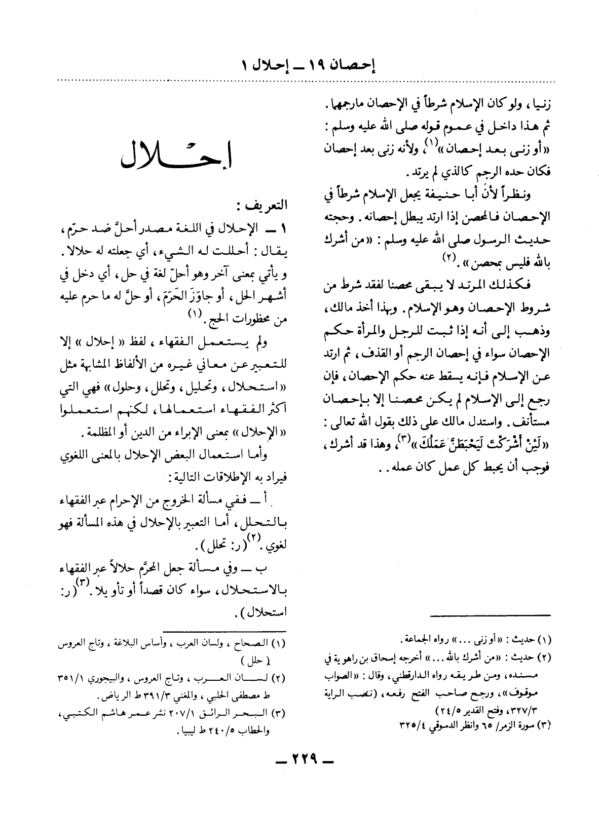 (3) سورة الزمر / 65 وانظر الدسوقي 4 / 325