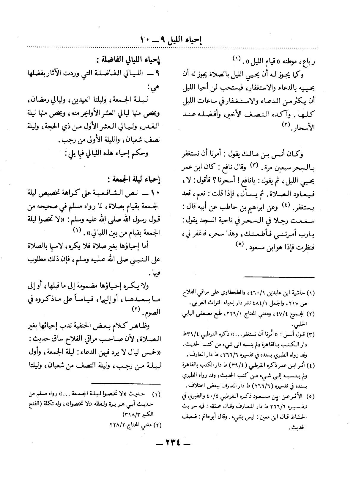 (1) حديث " لا تخصوا ليلة الجمعة. . .) ، رواه مسلم من حديث أبي هريرة ولفظه " لا تختصوا "، وله تكملة (الفتح الكبير 3 / 318)