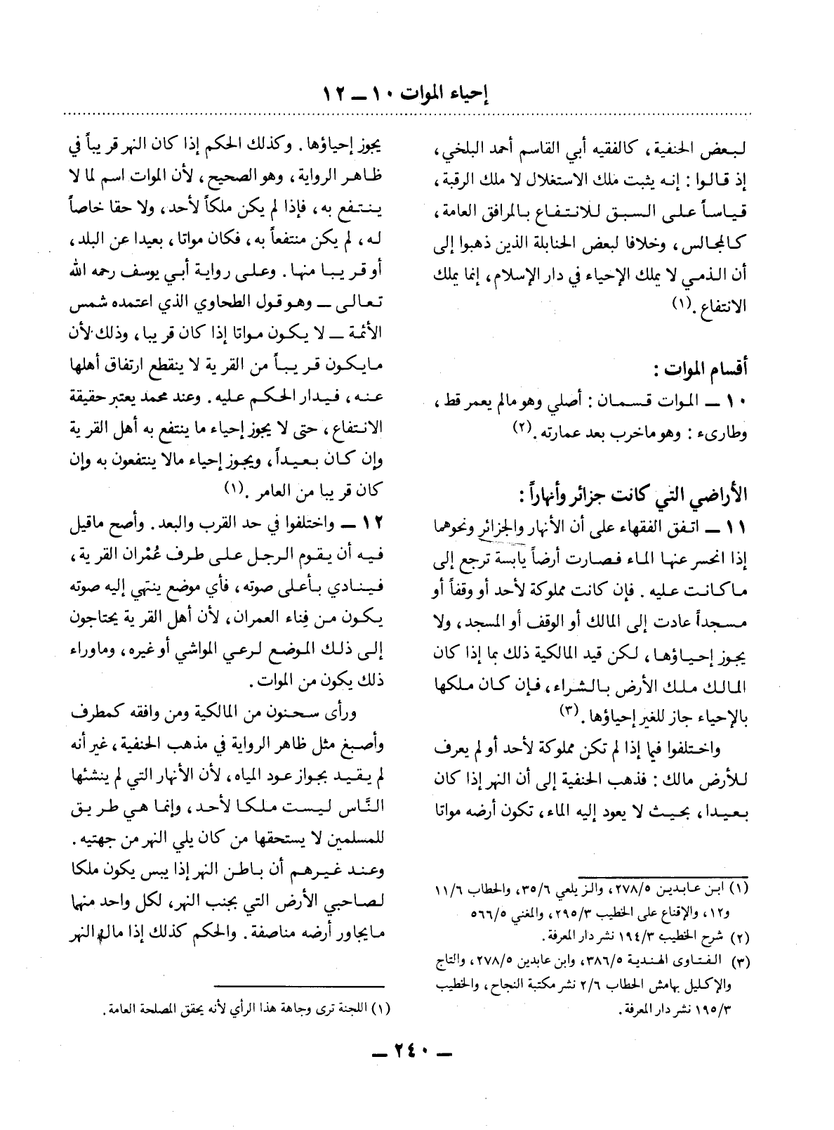 10 - الْمَوَاتُ قِسْمَانِ: أَصْلِيٌّ وَهُوَ مَا لَمْ يُعَمَّرْ قَطُّ، وَطَارِئٌ: وَهُوَ مَا خَرِبَ بَعْدَ عِمَارَتِهِ (2) .