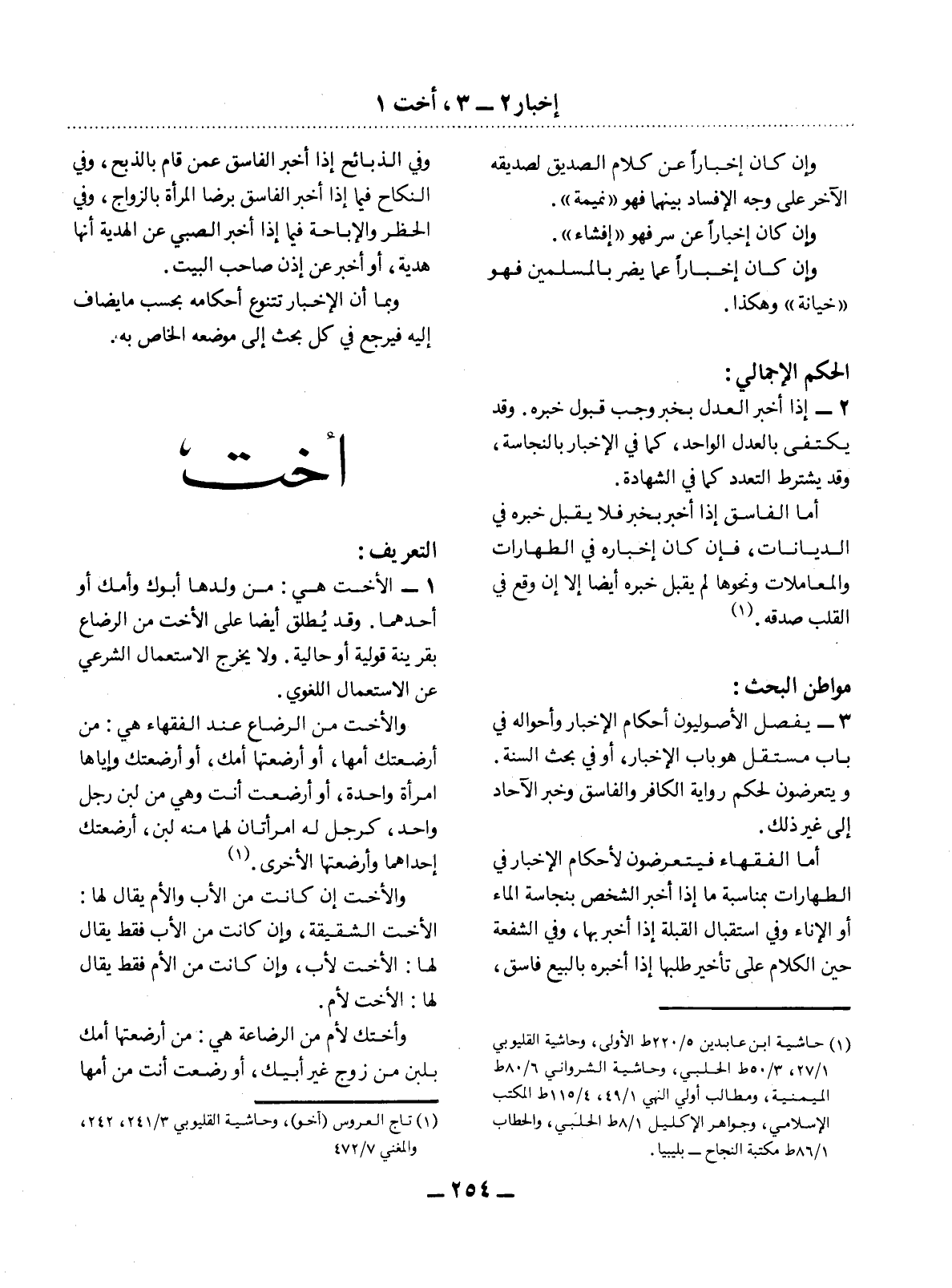 (1) تاج العروس (آخو) ، وحاشية القليوبي 3 / 241، 242، والمغني 7 / 472