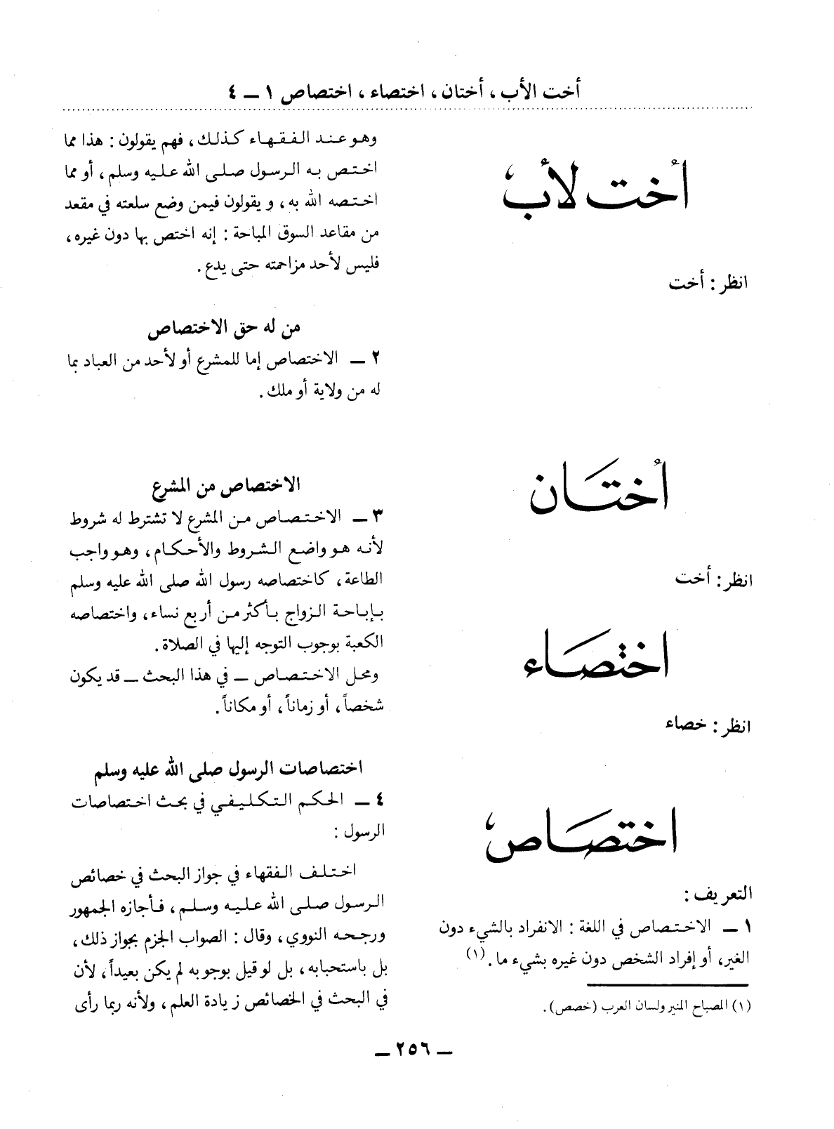 (1) المصباح المنير ولسان العرب (خصص) .