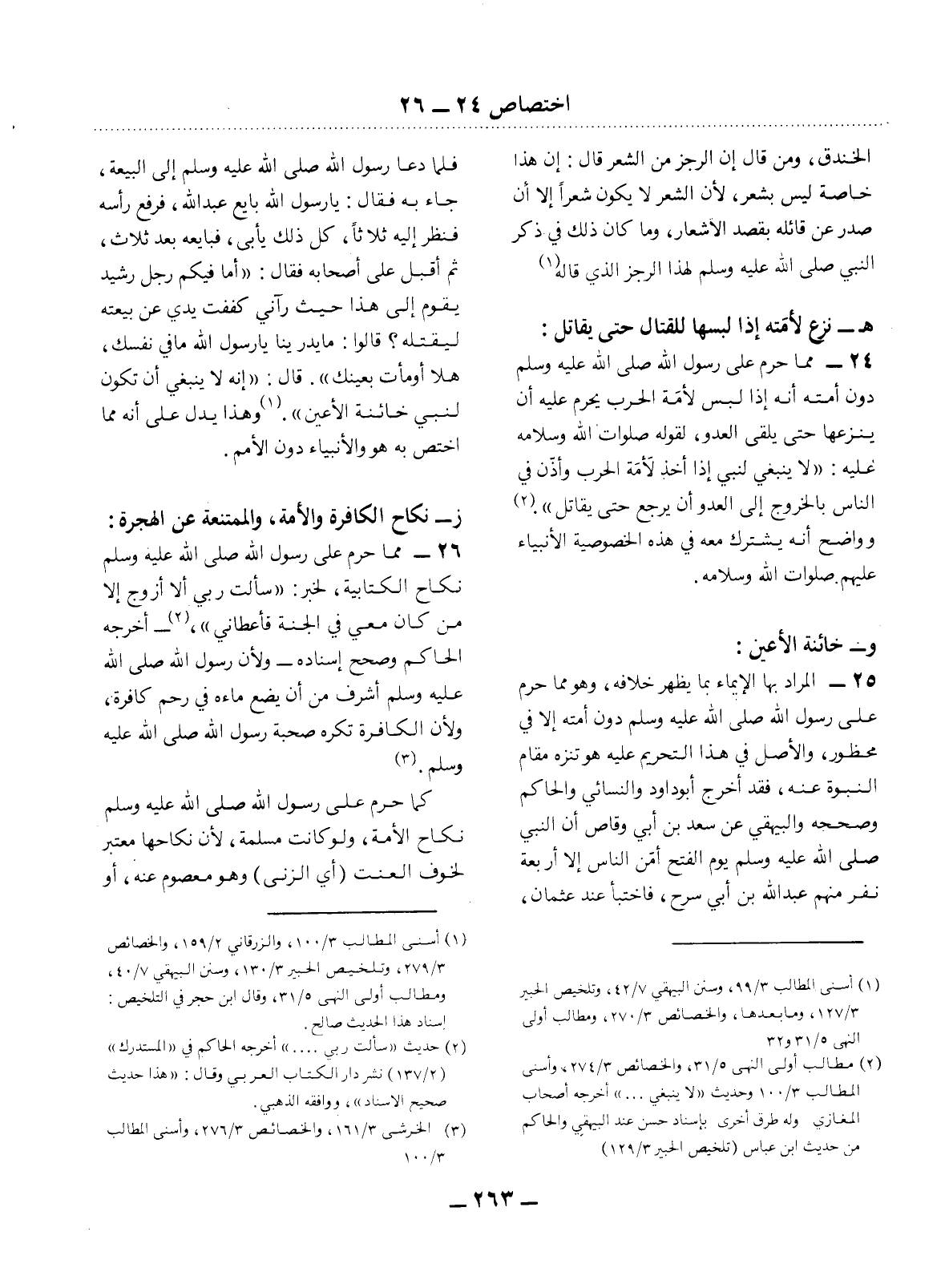 (3) الخرشي 3 / 161، والخصائص 3 / 276، وأسنى المطالب3 / 100 / 3 264 / 3