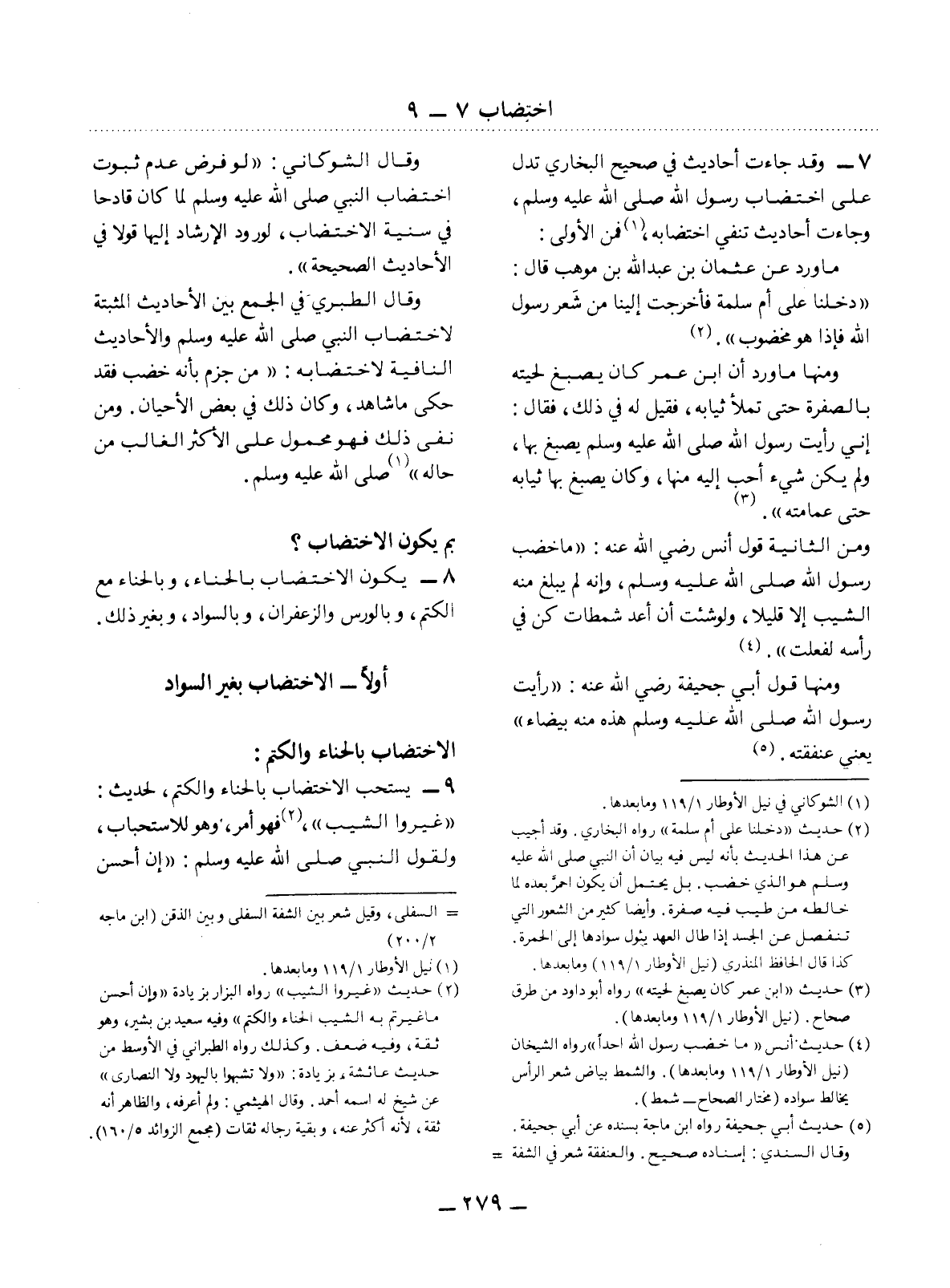 9 - يُسْتَحَبُّ الاِخْتِضَابُ بِالْحِنَّاءِ وَالْكَتَمِ، لِحَدِيثِ: غَيِّرُوا الشَّيْبَ، (2) فَهُوَ أَمْرٌ، وَهُوَ لِلاِسْتِحْبَابِ، وَلِقَوْل النَّبِيِّ صَلَّى اللَّهُ عَلَيْهِ وَسَلَّمَ: إِنَّ أَحْسَنَ