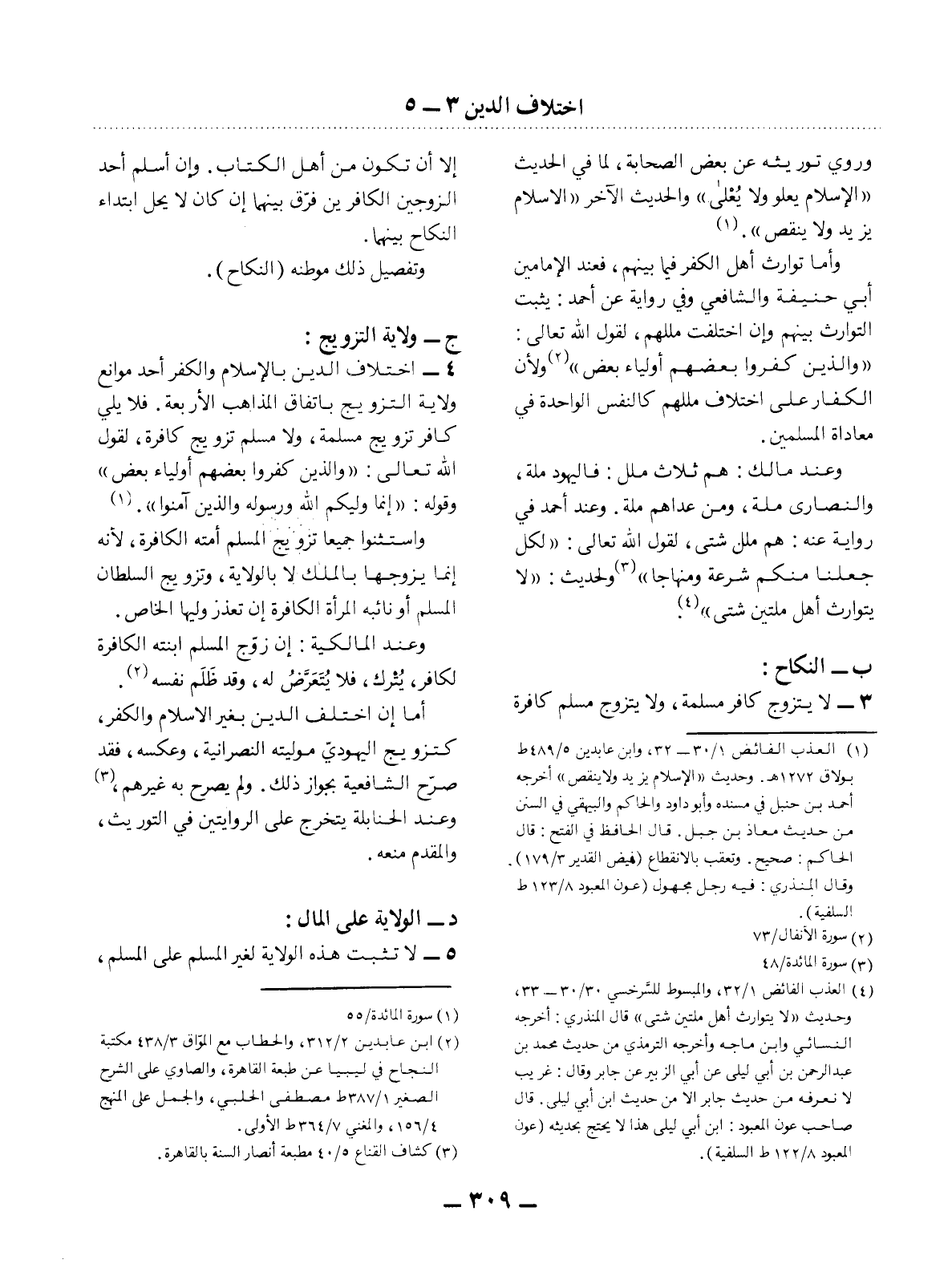 (4) العذب الفائض 1 / 32، والمبسوط للسرخسي 30 / 30 - 33، وحديث " لا لوارث أهل ملتين شتى) قال المنذري: أخرجه النسائي وابن ماجه وأخرجه الترمذي من حديث محمد بن عبد الرحمن بن أبي ليلى عن أبي الزبير عن جابر وقال: غريب لا نعرفه من حديث جابر إلا من حديث ابن أبي ليلى. قال صاحب عون المعبود: ابن أبي ليلى هذا لا يحتج بحديثه (عون المعبود 8 / 122 ط السلفية) .