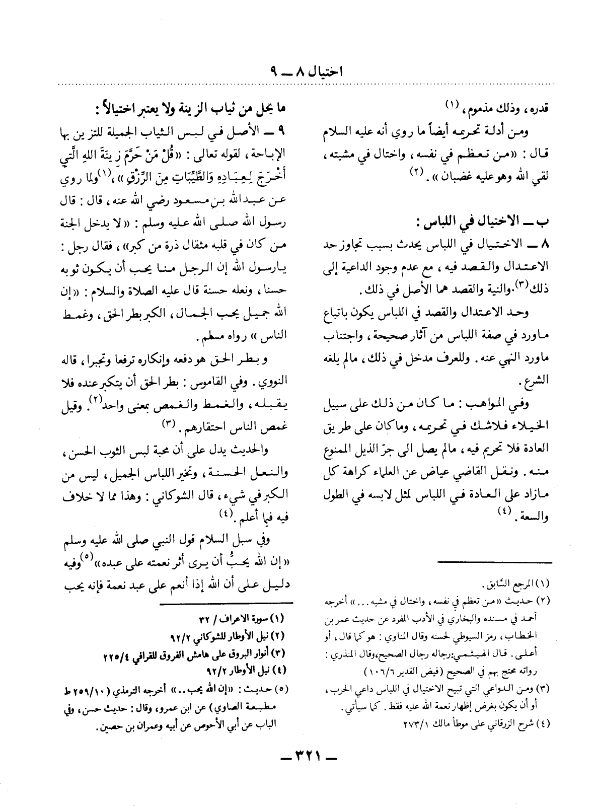 (2) حديث " من تعظم في نفسه، واختال في مشيه. . . أخرجه أحمد في مسنده والبخاري في الأدب المفرد عن حديث عمر بن الخطاب، رمز السيوطي لحسنه وقال المناوي: هو كما قال، أو أعلى. قال الهيثمي: رجاله رجال الصحيح، وقال المنذري: رراته محتج بهم في الصحيح (فيض القدير 6 / 106)