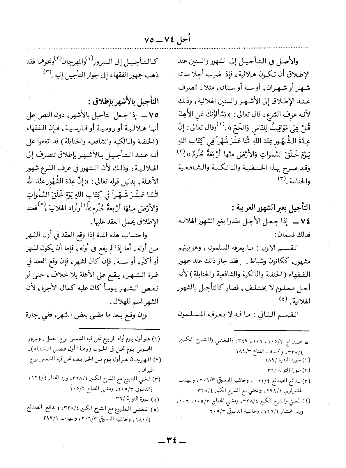 74 - إِذَا جَعَل الأَْجَل مُقَدَّرًا بِغَيْرِ الشُّهُورِ الْهِلاَلِيَّةِ فَذَلِكَ قِسْمَانِ: