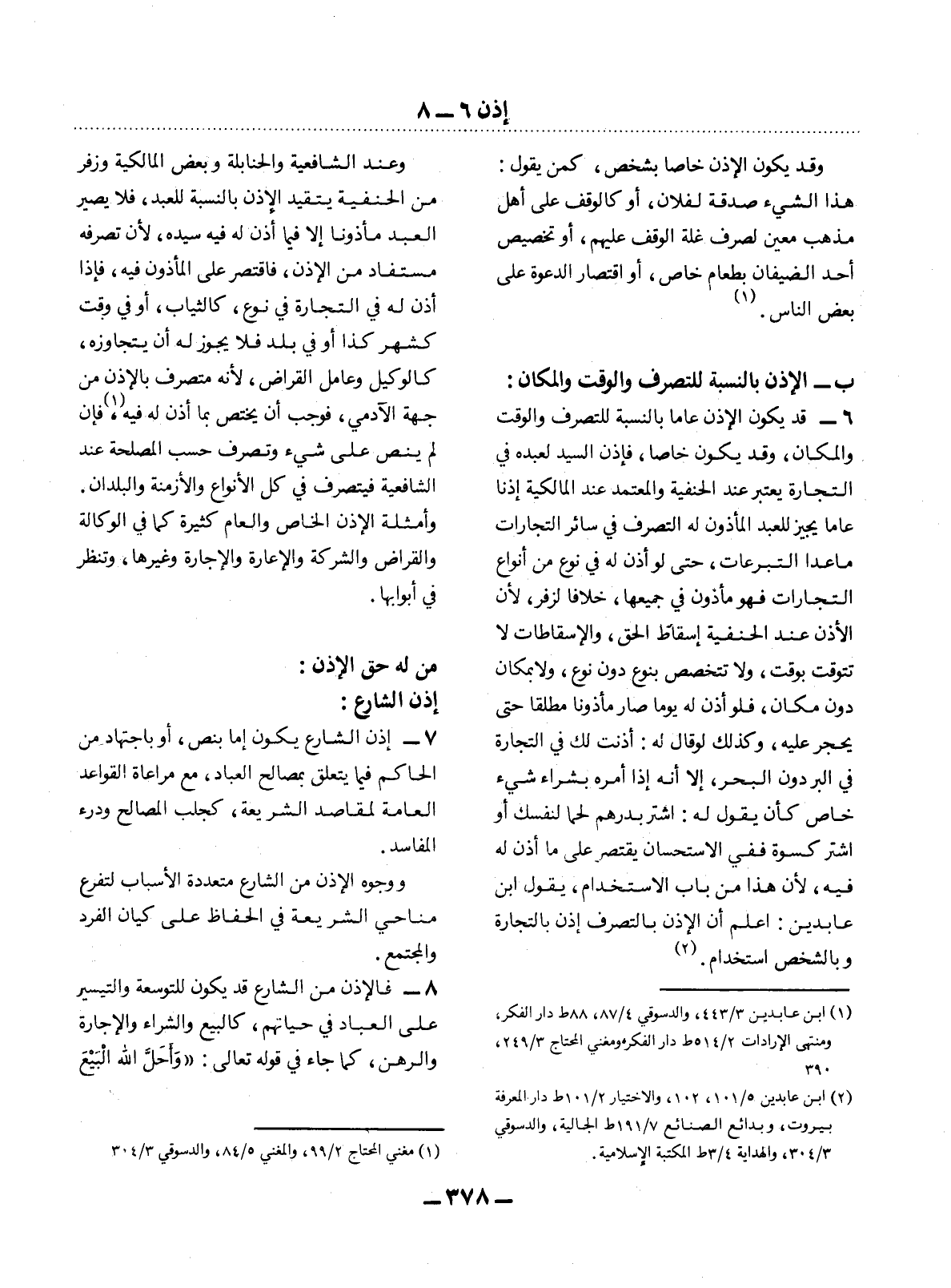 7 - إِذْنُ الشَّارِعِ يَكُونُ إِمَّا بِنَصٍّ، أَوْ بِاجْتِهَادٍ مِنَ الْحَاكِمِ فِيمَا يَتَعَلَّقُ بِمَصَالِحِ الْعِبَادِ، مَعَ مُرَاعَاةِ الْقَوَاعِدِ الْعَامَّةِ لِمَقَاصِدِ الشَّرِيعَةِ، كَجَلْبِ الْمَصَالِحِ وَدَرْءِ الْمَفَاسِدِ.