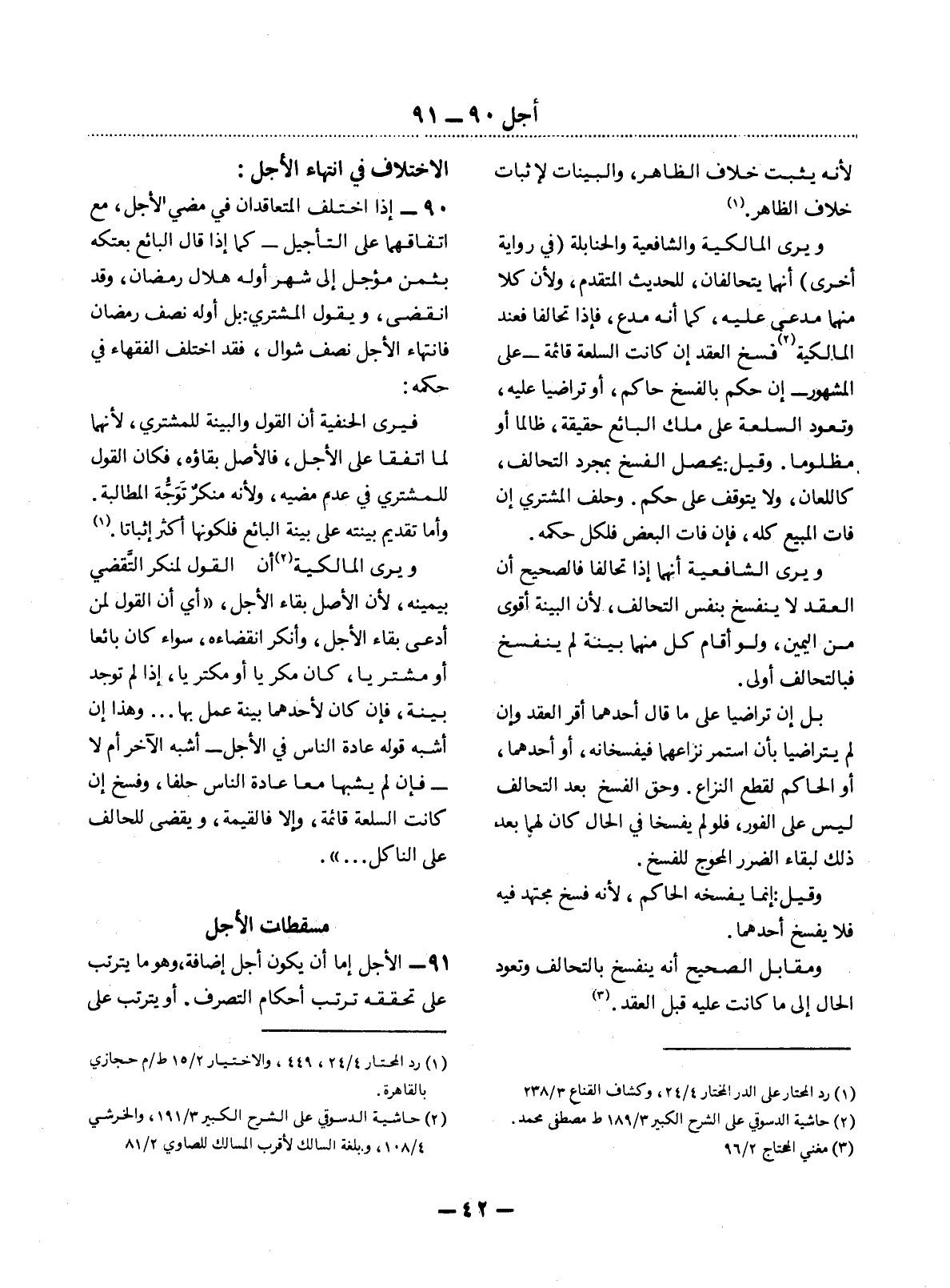 91 - الأَْجَل إِمَّا أَنْ يَكُونَ أَجَل إِضَافَةٍ، وَهُوَ مَا يَتَرَتَّبُ عَلَى تَحَقُّقِهِ تَرَتُّبُ أَحْكَامِ التَّصَرُّفِ. أَوْ يَتَرَتَّبُ عَلَى