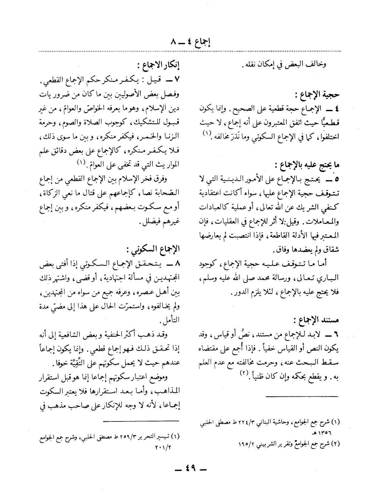 (1) شرح جمع الجوامع، وحاشية البناني 3 / 224 ط مصطفى الحلبي 1356 هـ