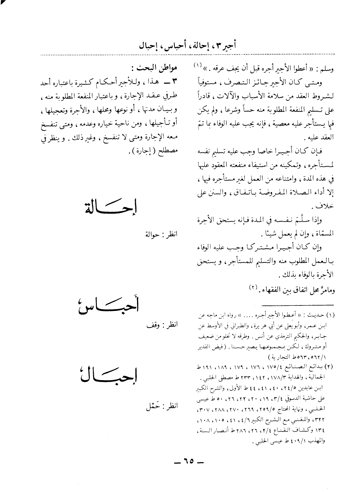 أَعْطُوا الأَْجِيرَ أَجْرَهُ قَبْل أَنْ يَجِفَّ عَرَقُهُ. . وَمَتَى كَانَ الأَْجِيرُ جَائِزَ التَّصَرُّفِ، مُسْتَوْفِيًا لِشُرُوطِ الْعَقْدِ مِنْ سَلاَمَةِ الأَْسْبَابِ وَالآْلاَتِ، قَادِرًا عَلَى تَسْلِيمِ الْمَنْفَعَةِ الْمَطْلُوبَةِ مِنْهُ حِسًّا وَشَرْعًا، وَلَمْ يَكُنْ فِيمَا يُسْتَأْجَرُ عَلَيْهِ مَعْصِيَةٌ، فَإِنَّهُ يَجِبُ عَلَيْهِ الْوَفَاءُ بِمَا تَمَّ الْعَقْدُ عَلَيْهِ.