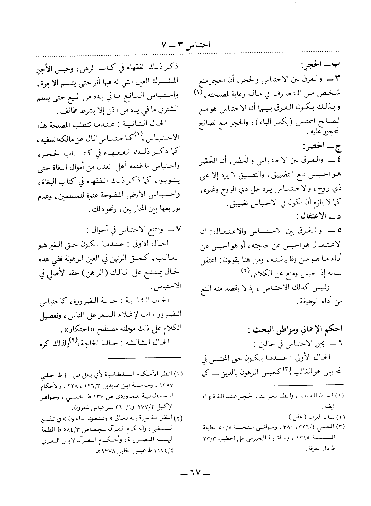 (1) لسان العرب، وانظر تعريف الحجر عند الفقهاء