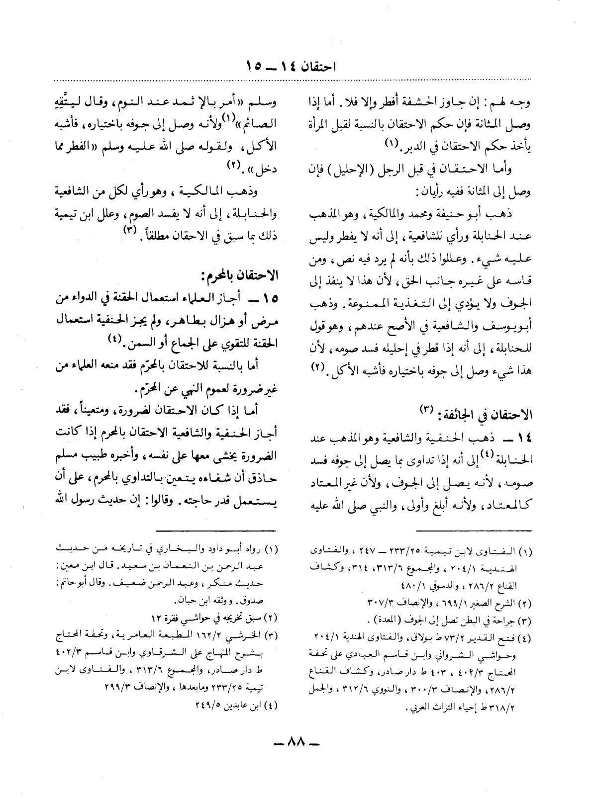 (3) الخرشي 3 / 162 المطبعة العامرية. وتحفة المحتاج بشرح المنهاج على الشرقاوي وابن قاسم 3 / 402 ط دار صادر، والمجموع 6 / 313، والفتاوى لابن تيمية 25 / 233 وما بعدها، والإنصاف 3 / 299