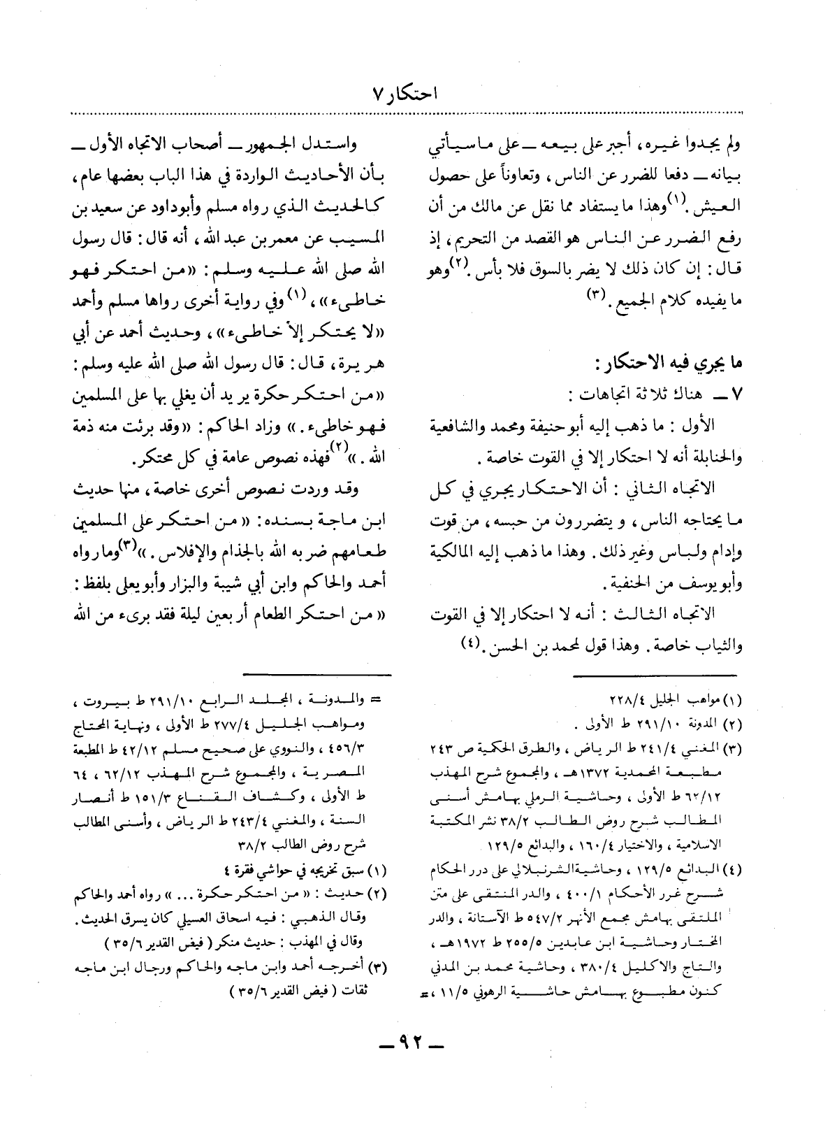 (4) البدائع 5 / 129، وحاشيه الثسرنبلالي على درر الحكام بشرح غرز الأحكام 1 / 400، والدر المنتقى على متن الملتقى بهامش مجمع الأنهار 2 / 547 ط الآستانة، والدر المختار وحاشية ابن عابدين 5 / 255 ط 1172. هـ، والتاج والإكليل 4 / 380، وحاشية محمد بن المدني كنون مطبوع بهامش حاشية الرهوني 5 / 11، والمدونة، المجلد الرابع 10 / 291 ط بيروت، ومواهب الجليل 4 / 277 ط الأولى، ونهاية المحتاج 3 / 456، والنووي على صحيح مسلم 12 / 42 ط المطبعة المصرية، والمجموع شرح المهذب 12 / 62، 64 ط الأولى، وكشاف القناع 3 / 151 ط أنصار السنة، والمغني 4 / 243 ط الرياض، وأسنى المطالب شرح روض الطالب 2 / 38