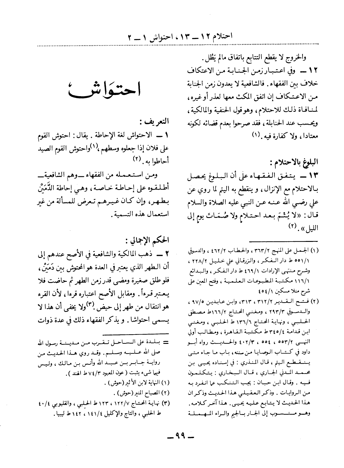 (1) الجمل على المنهج 2 / 363، والحطاب 2 / 462، والدسوقي 1 / 551 ط دار الفكر، والزرقاني على خليل 2 / 228، وشرح منتهى الإرادات 1 / 469 ط دار الفكر، والبدائع 1 / 116 مكتبة المطبوعات العلمية، وفتح المعين على شرح منلا مسكين 1 / 454