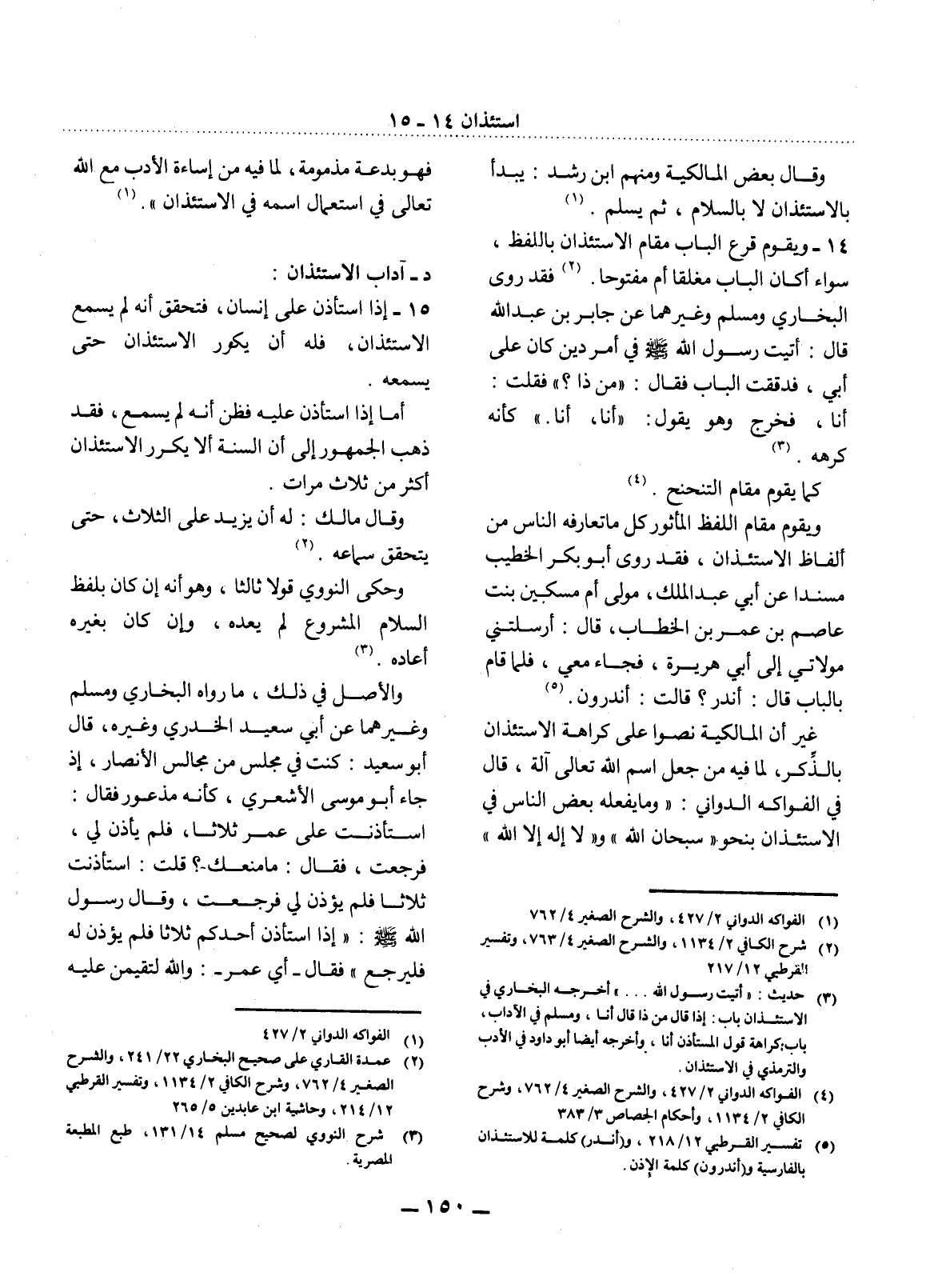 15 - إِذَا اسْتَأْذَنَ عَلَى إِنْسَانٍ، فَتَحَقَّقَ أَنَّهُ لَمْ يَسْمَعِ الاِسْتِئْذَانَ، فَلَهُ أَنْ يُكَرِّرَ الاِسْتِئْذَانَ حَتَّى يَسْمَعَهُ.