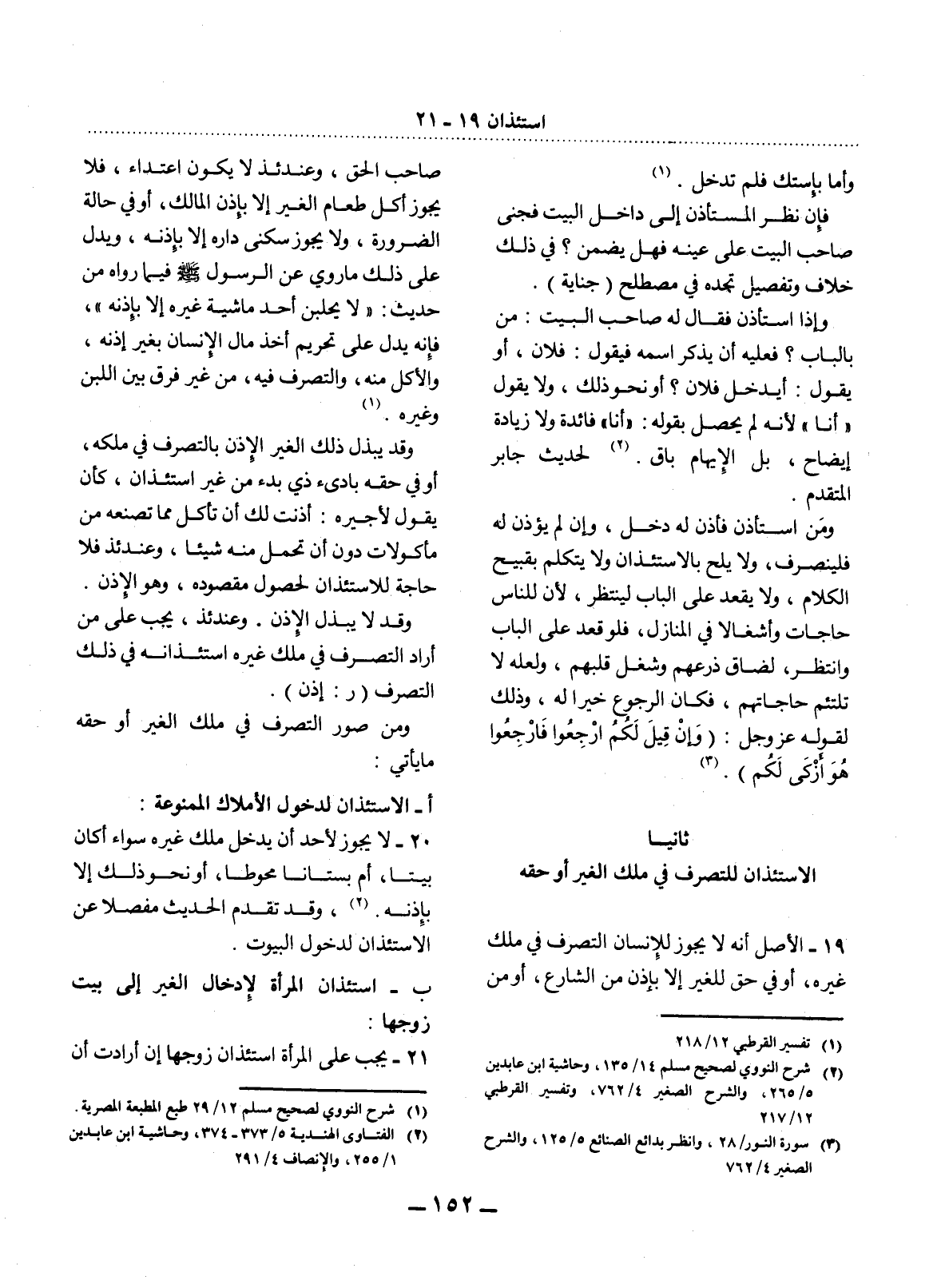 20 - لاَ يَجُوزُ لأَِحَدٍ أَنْ يَدْخُل مِلْكَ غَيْرِهِ سَوَاءٌ أَكَانَ بَيْتًا، أَمْ بُسْتَانًا مَحُوطًا، أَوْ نَحْوَ ذَلِكَ إِلاَّ بِإِذْنِهِ (2) .، وَقَدْ تَقَدَّمَ الْحَدِيثُ مُفَصَّلاً عَنِ الاِسْتِئْذَانِ لِدُخُول الْبُيُوتِ.