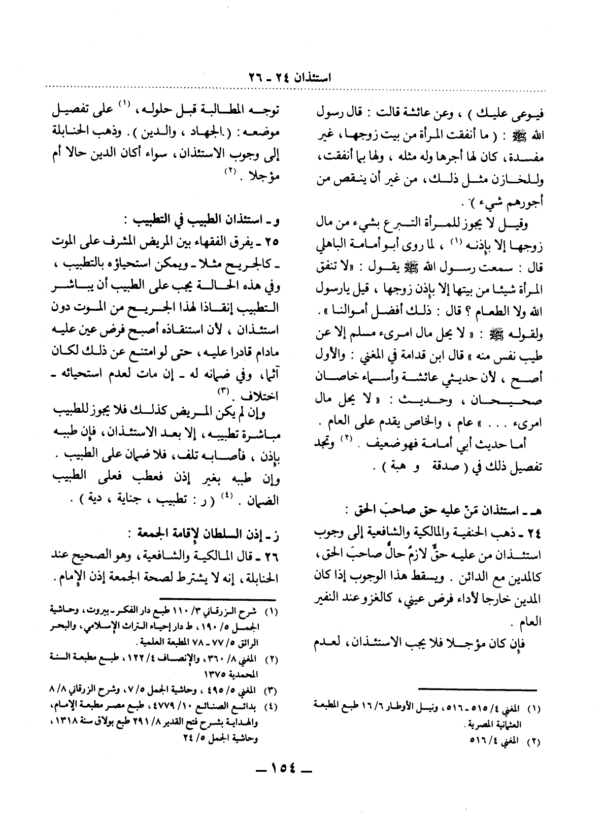 (1) شرح الزرقاني 3 / 110 طبع دار الفكر - بيروت، وحاشية الجمل 5 / 190، ط دار إحياء التراث الإسلامي، والبحر الرائق 5 / 77 - 78 المطبعة العلمية.