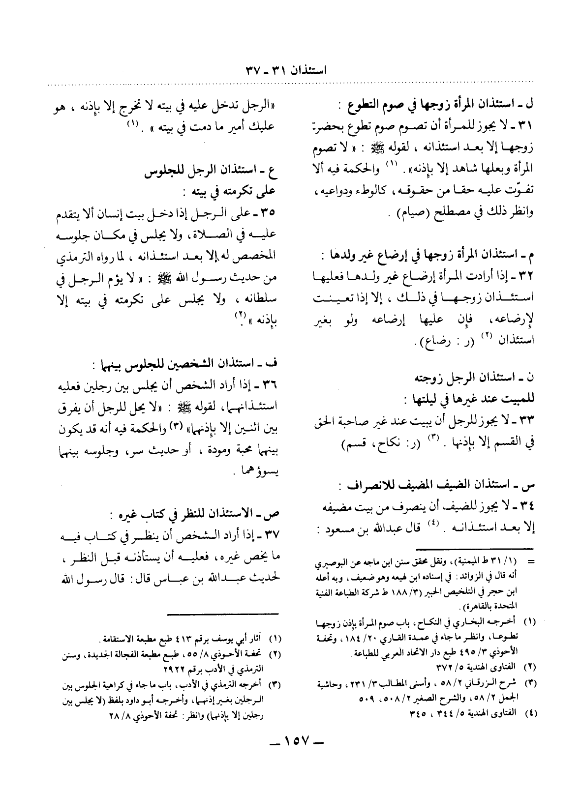 34 - لاَ يَجُوزُ لِلضَّيْفِ أَنْ يَنْصَرِفَ مِنْ بَيْتِ مُضِيفِهِ إِلاَّ بَعْدَ اسْتِئْذَانِهِ (4) . قَال عَبْدُ اللَّهِ بْنُ مَسْعُودٍ: