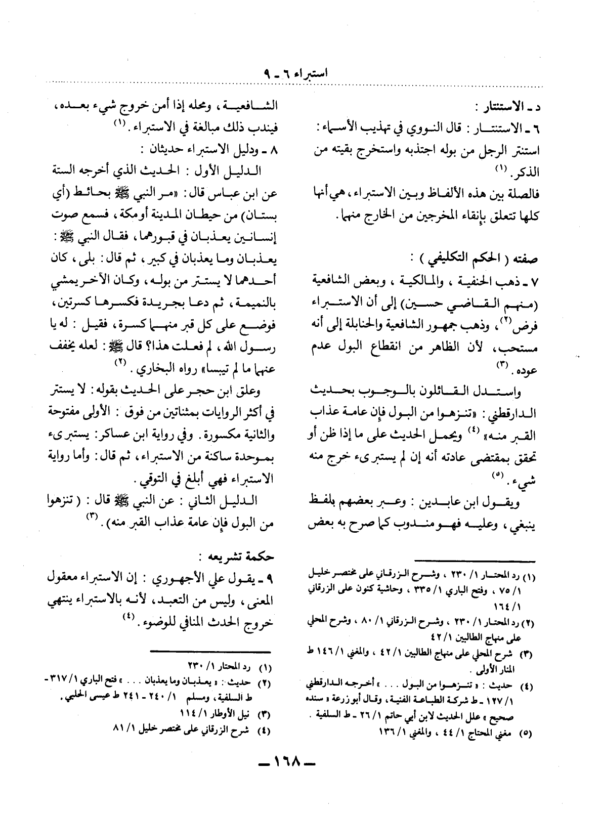 (1) رد المحتار 1 / 230، وشرح الززقاني على مختصر خليل 1 / 75، وفتح الباري 1 / 335، وحاشية كنون على الزرقاني 1 / 164