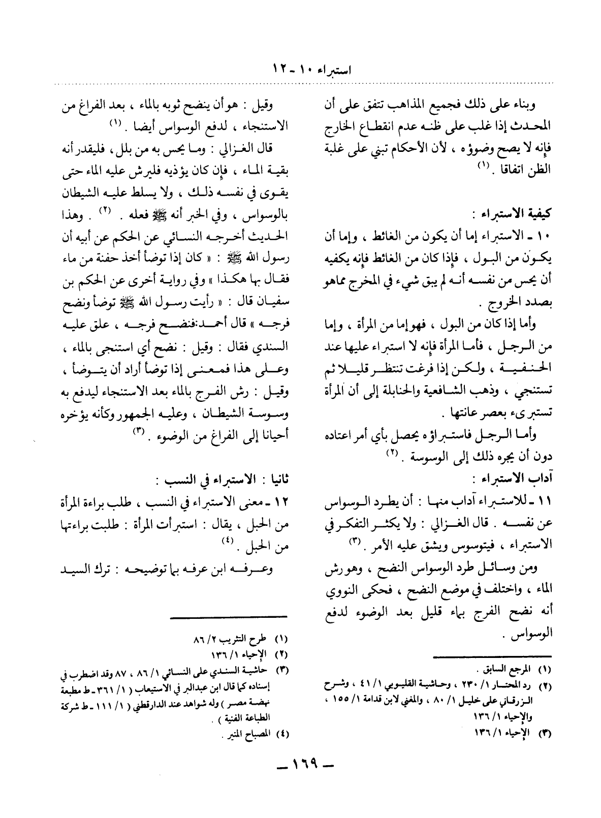 (2) رد المحتار 1 / 230، وحاشية القليوبي 1 / 41، وشرح الزرقاني على خليل 1 / 80، والمغني لابن قدامة 1 / 155، والإحياء 1 / 136