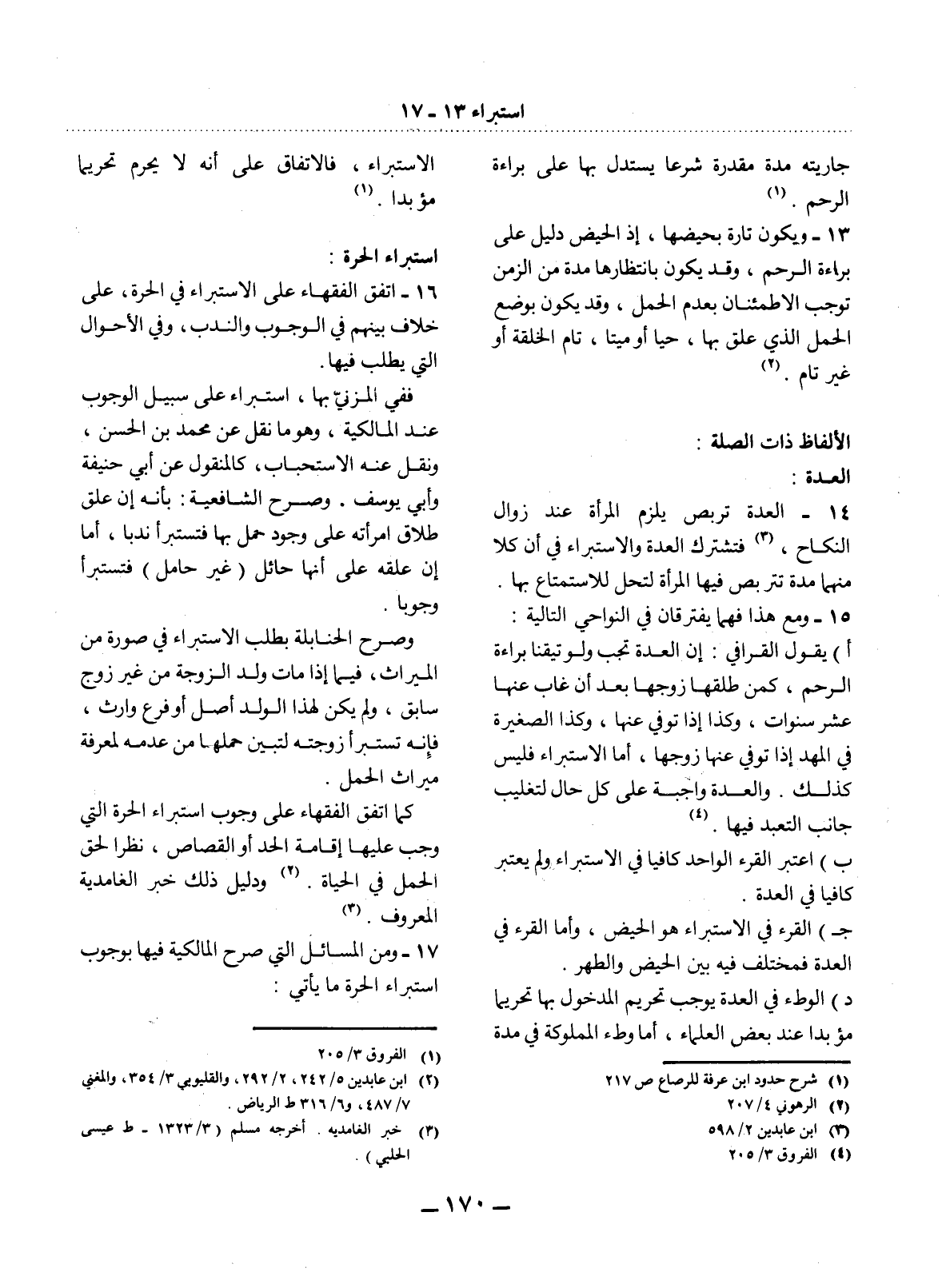 13 - وَيَكُونُ تَارَةً بِحَيْضِهَا، إِذِ الْحَيْضُ دَلِيلٌ عَلَى بَرَاءَةِ الرَّحِمِ، وَقَدْ يَكُونُ بِانْتِظَارِهَا مُدَّةً مِنَ الزَّمَنِ تُوجِبُ الاِطْمِئْنَانَ بِعَدَمِ الْحَمْل، وَقَدْ يَكُونُ بِوَضْعِ الْحَمْل الَّذِي عَلِقَ بِهَا، حَيًّا أَوْ مَيِّتًا، تَامَّ الْخِلْقَةِ أَوْ غَيْرَ تَامٍّ (2) .