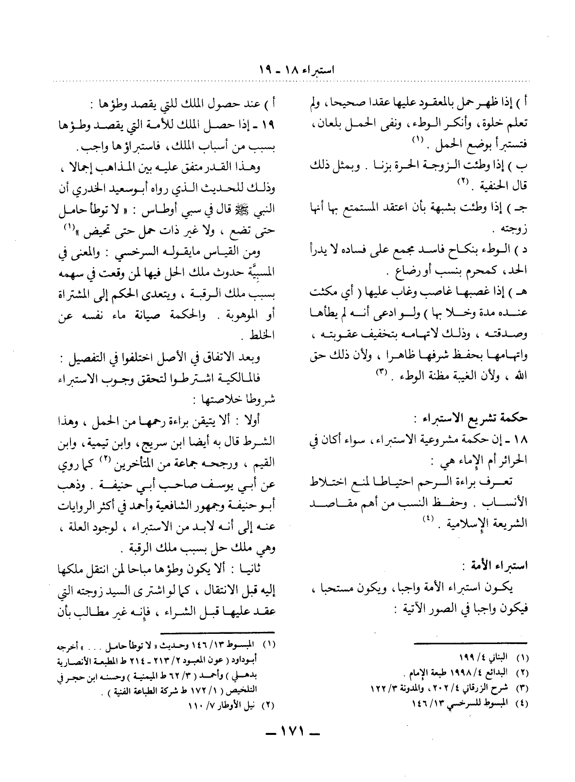 (1) المبسوط 13 / 146 وحديث " لا توطأ حامل. . . " أخرجه أبو داود (عون المعبود 2 / 213 - 214 ط المطبعة الأنصارية بدهلي) وأحمد (3 / 62 ط الميمنية) وحسنه ابن حجر في التلخيص (1 / 172 ط شركة الطباعة الفنية) .