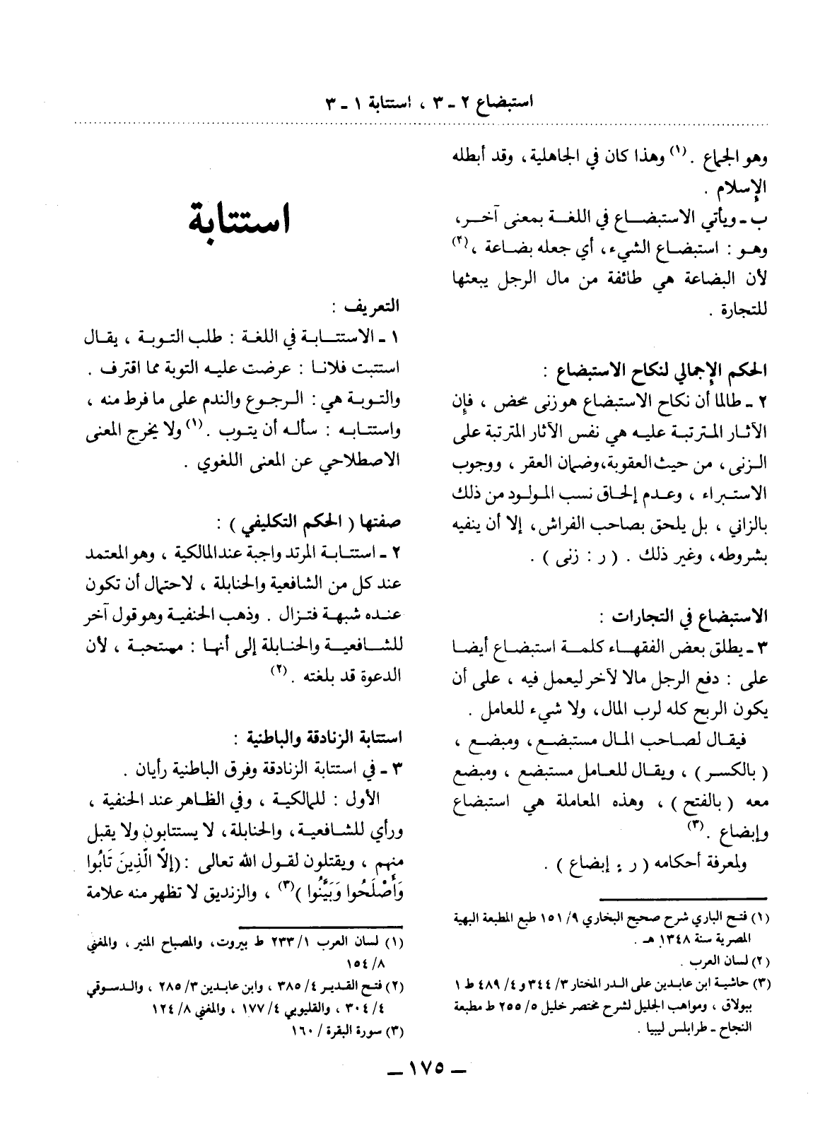 (3) حاشية ابن عابدين على الدر المختار 3 / 344 و 4 / 489 ط1 ببولاق، ومواهب الجليل لشرح مختصر خليل 5 / 255 ط مطبعة النجاح - طرابلس ليبيا.