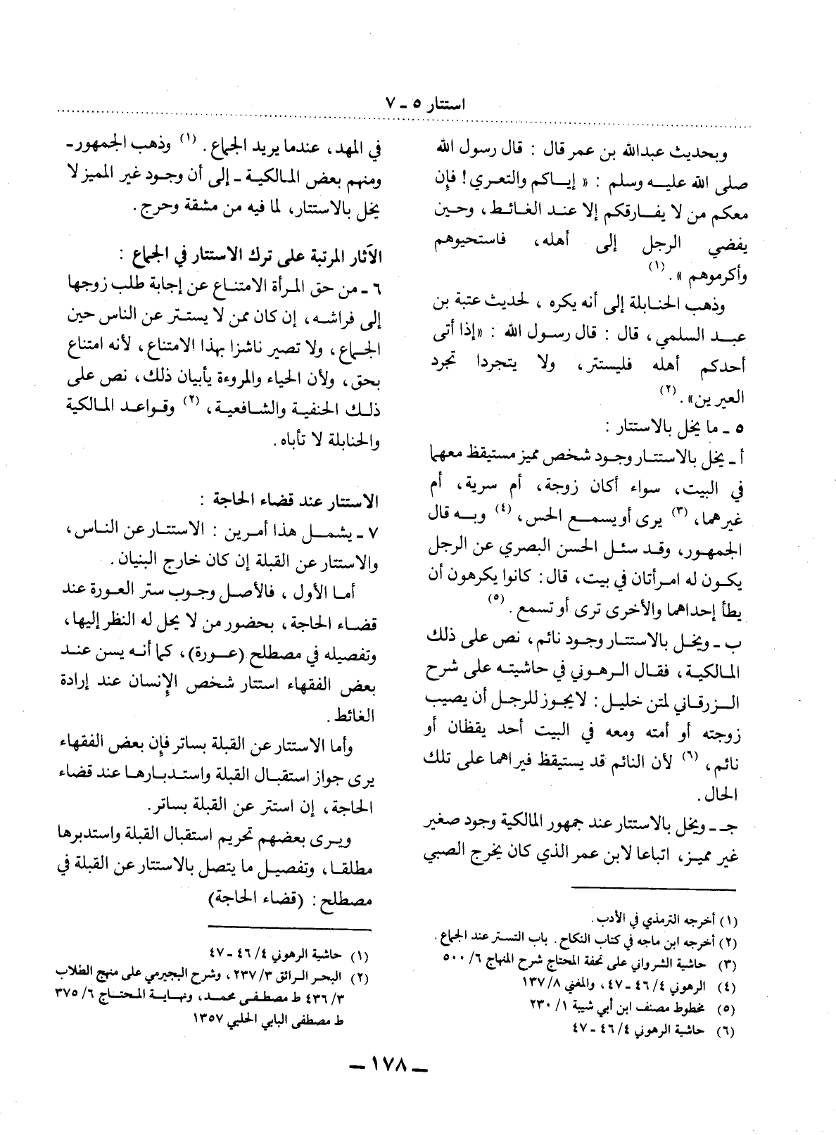 (2) أخرجه ابن ماجه في كتاب النكاح. باب التستر عند الجماع.