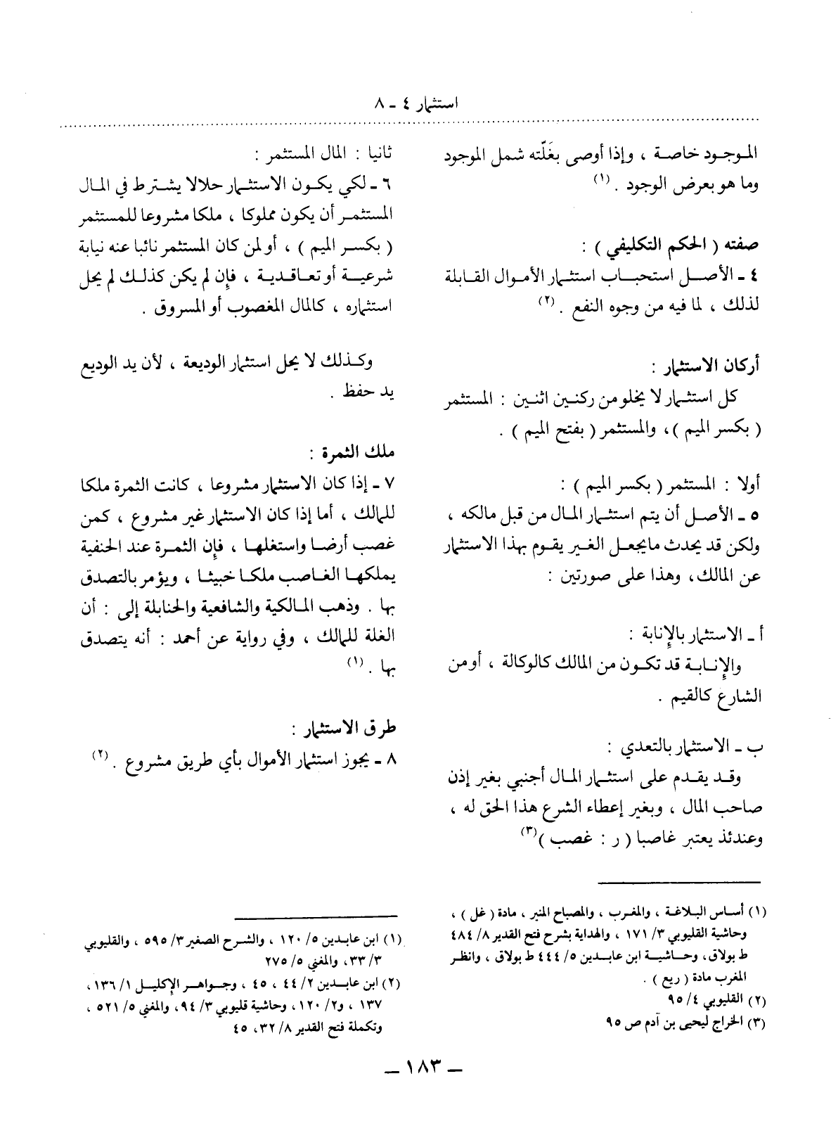8 - يَجُوزُ اسْتِثْمَارُ الأَْمْوَال بِأَيِّ طَرِيقٍ مَشْرُوعٍ (2) .