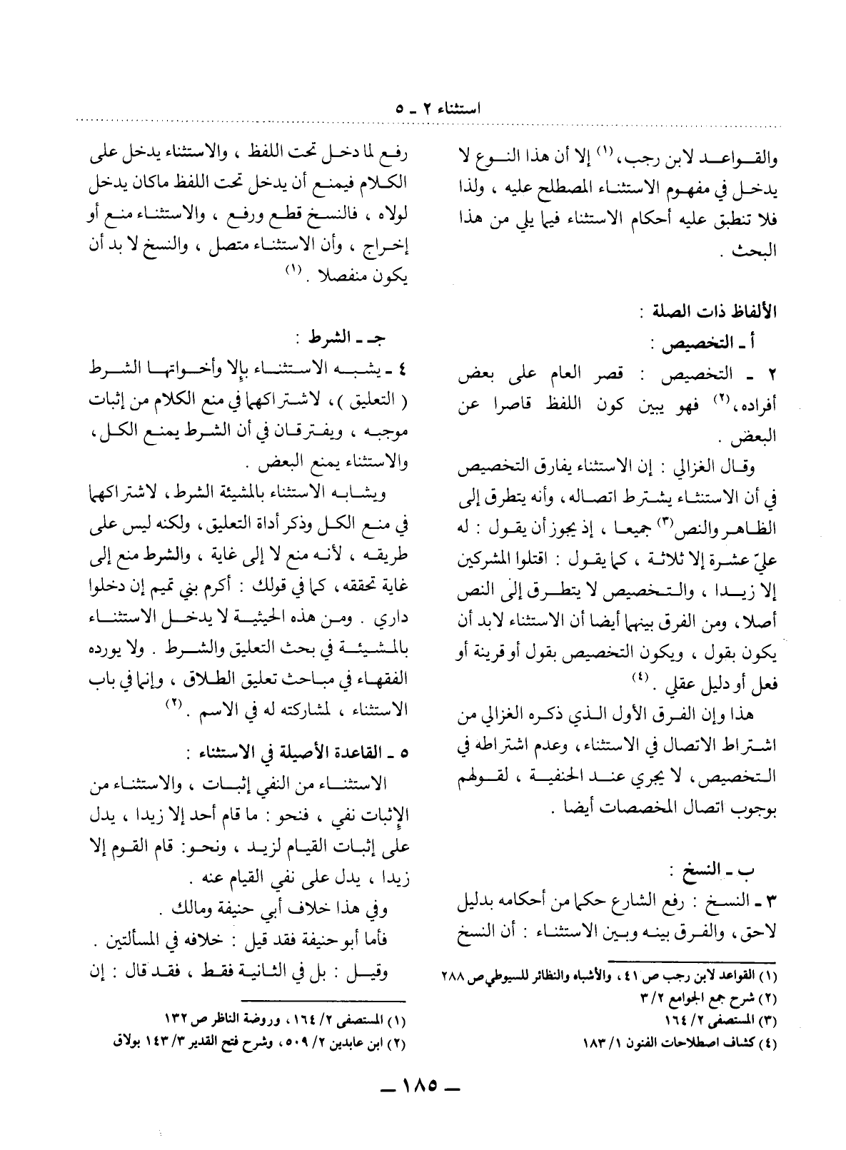 وَالْقَوَاعِدِ لاِبْنِ رَجَبٍ (1) ، إِلاَّ أَنَّ هَذَا النَّوْعَ لاَ يَدْخُل فِي مَفْهُومِ الاِسْتِثْنَاءِ الْمُصْطَلَحِ عَلَيْهِ، وَلِذَا فَلاَ تَنْطَبِقُ عَلَيْهِ أَحْكَامُ الاِسْتِثْنَاءِ فِيمَا يَلِي مِنْ هَذَا الْبَحْثِ.