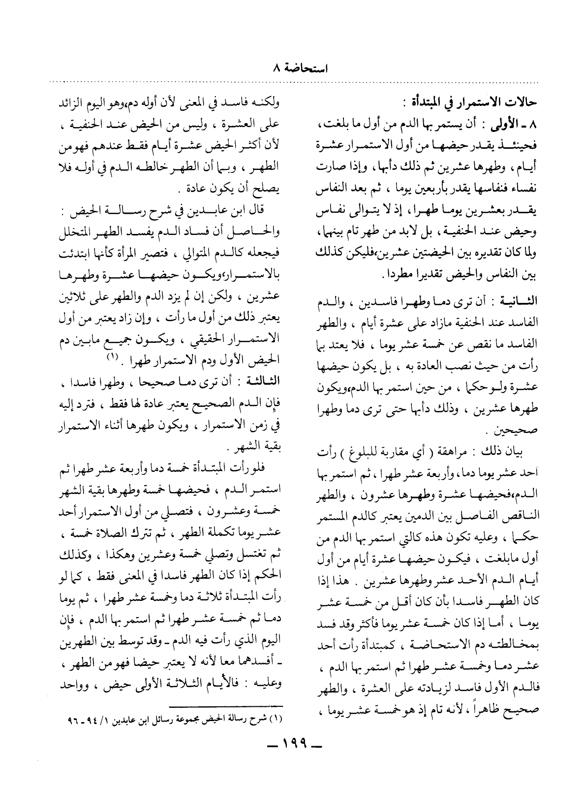 (1) شرح رسالة الحيض مجموعة رسائل ابن عابدين 1 / 94 - 96