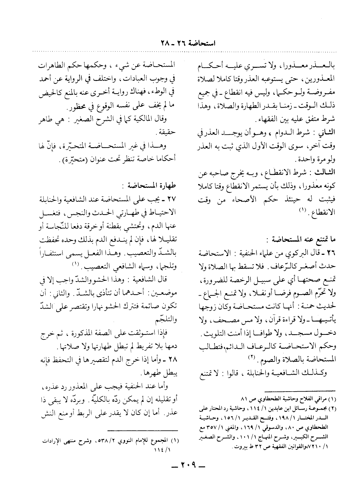 (2) مجموعة رسائل ابن عابدين 1 / 114، وحاشية رد المحتار على الدر المختار 1 / 198، وفتح القدير 1 / 156، وحاشية الطحطاوي ص 80، والدسوقي 1 / 169، والمغني 1 / 357 مع الشرح الكبير، وشرح المنهاج 1 / 101، والشرح الصغير 1 / 7210، والقوانين الفقهية ص 32 ط بيروت.