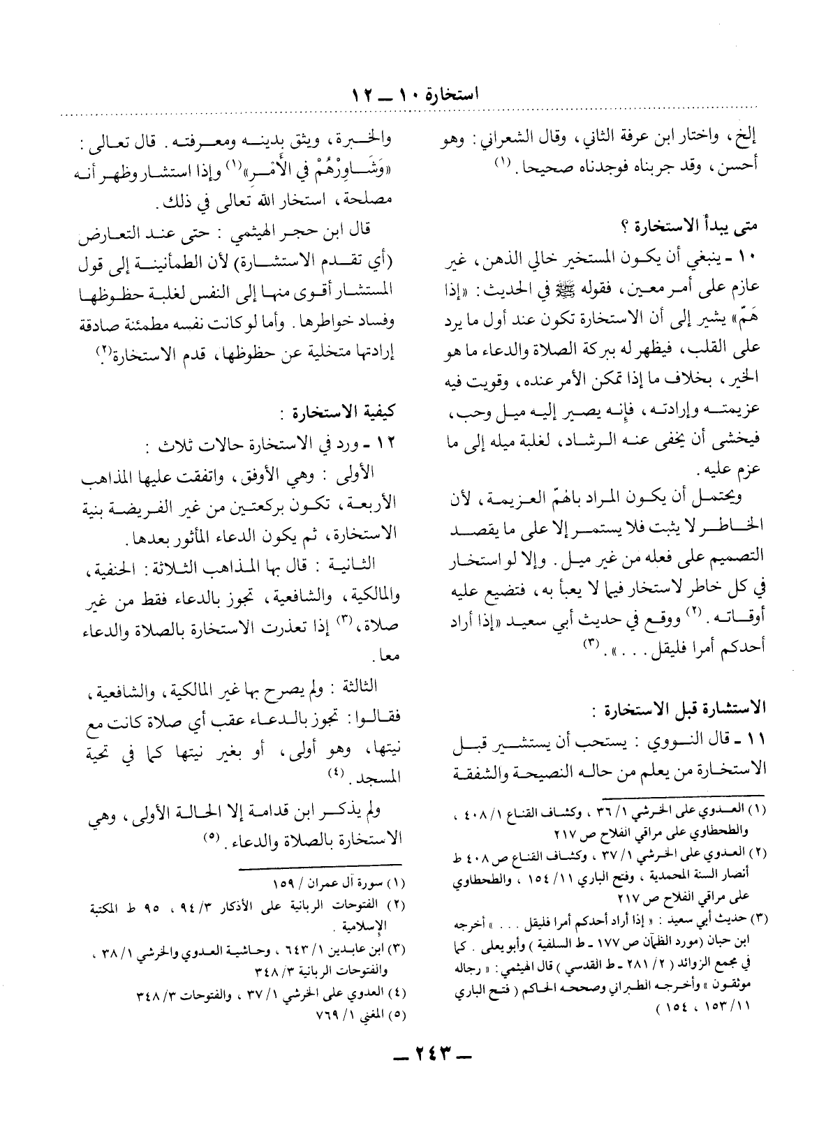 12 - وَرَدَ فِي الاِسْتِخَارَةِ حَالاَتٌ ثَلاَثٌ: